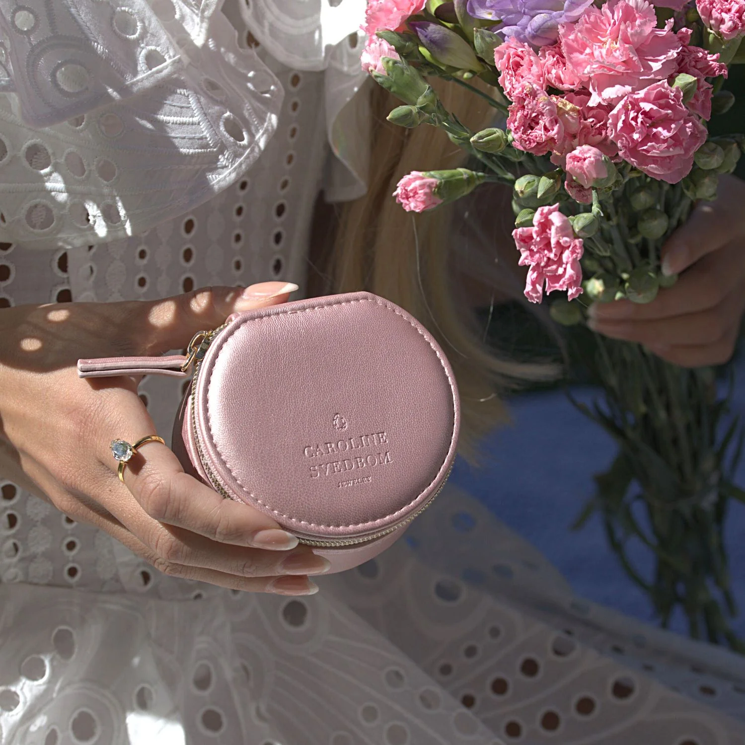 Oppbevar dine dyrebare glitrende smykker i vår Mini Organizer laget av PU-vegansk skinn! Denne Mini Organizeren er perfekt i størrelse for daglig bruk, å ta med i vesken eller når du reiser på helgen, slik at du alltid har et sett med dine favoritt glitrende skatter med deg uten å bekymre deg for at de floker seg. Eller hvorfor ikke ha flere Mini Organizere hvor du forbereder forskjellige antrekk for hver dag?