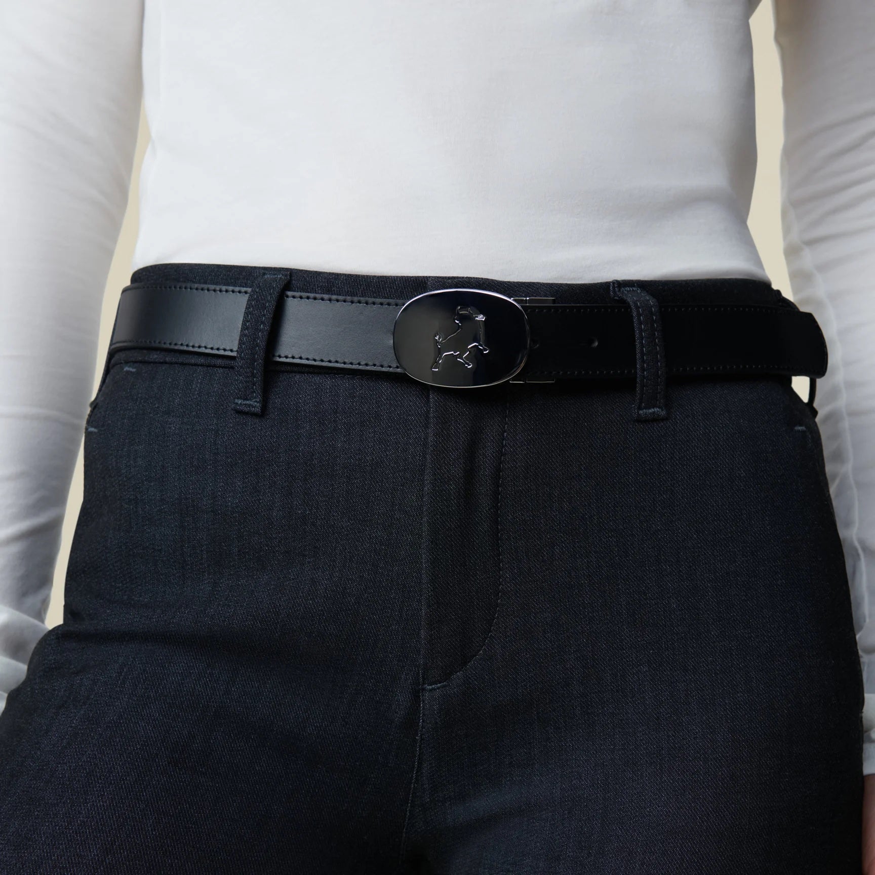 Vendbart skinnbelte med okseemblem i sølv. - 100 % premium kuskinn - Vendbart belte i klassisk svart eller rik mørkebrun - "Silver" spenne med oksepreging - Laget i Portugal.