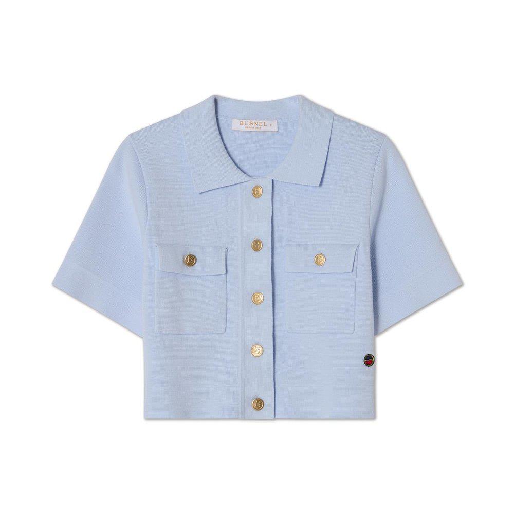 Valery Jacket er en kort, cropped topp detaljert med fem gylne B-knapper foran og to lommer med en gylden B-knapp. Den har en klassisk krage og korte ermer.