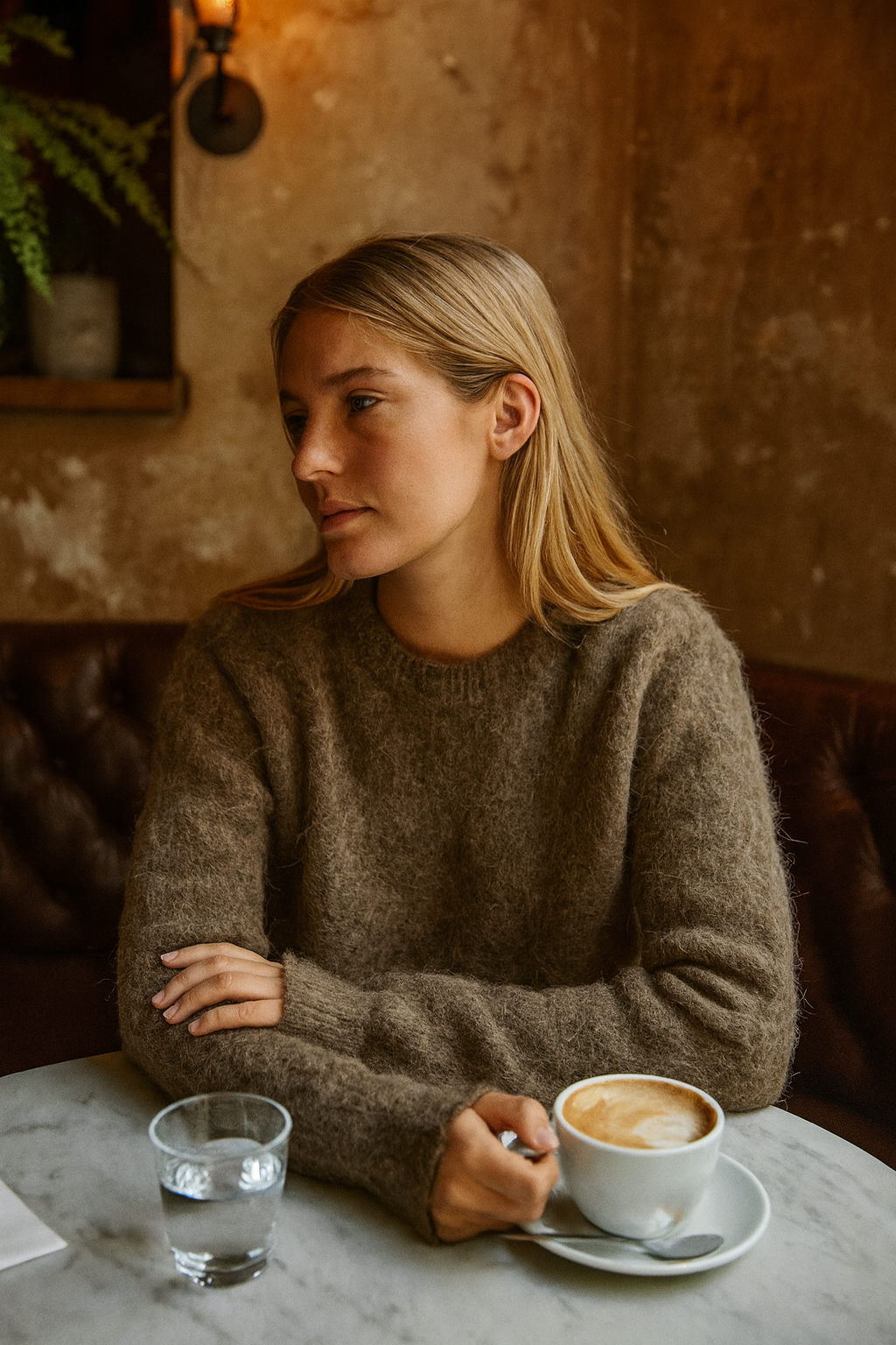 Gi garderoben et mykt og luksuriøst tilskudd med denne genseren i lett mohairblanding. Den har rund hals, ribbestrikkede mansjetter og kant som gir en klassisk fasong, samtidig som den hårete teksturen gir et moderne og koselig uttrykk. Laget av en blanding av alpakka, akryl, nylon og spandex, får du en genser som både er lett, behagelig og elastisk – perfekt til både hverdags og mer pyntede anledninger.