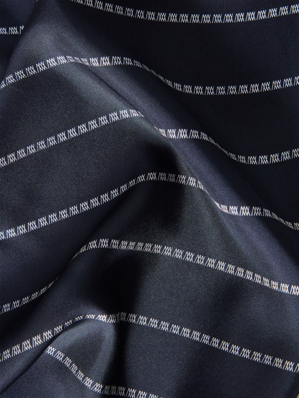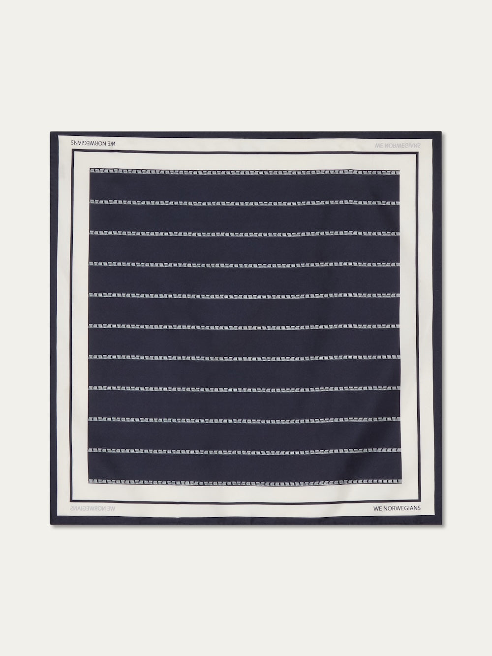 Silkeskjerf fra We Norwegians i fargen navy blue. Skjerfet er laget av silke-twill og med merkevarens karakteristiske logomønster formet som striper, noe som gir et stilrent og sofistikert uttrykk. Det kan styles på flere måter, bruk det som et klassisk halstørkle, i håret eller knyt det rundt håndtaket på favorittvesken din for en personlig detalj.