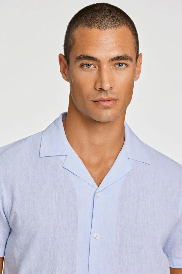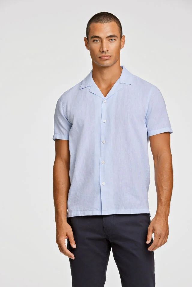 Kortermet skjorte med resortkrage og en avslappet, sommerlig følelse. Laget av en myk og pustende lin- og bomullsblanding som gir stoffet en naturlig tekstur. Det rene, enkle designet gjør den enkel å style, mens den avslappede passformen sitter tett inntil kroppen uten å føles stram.