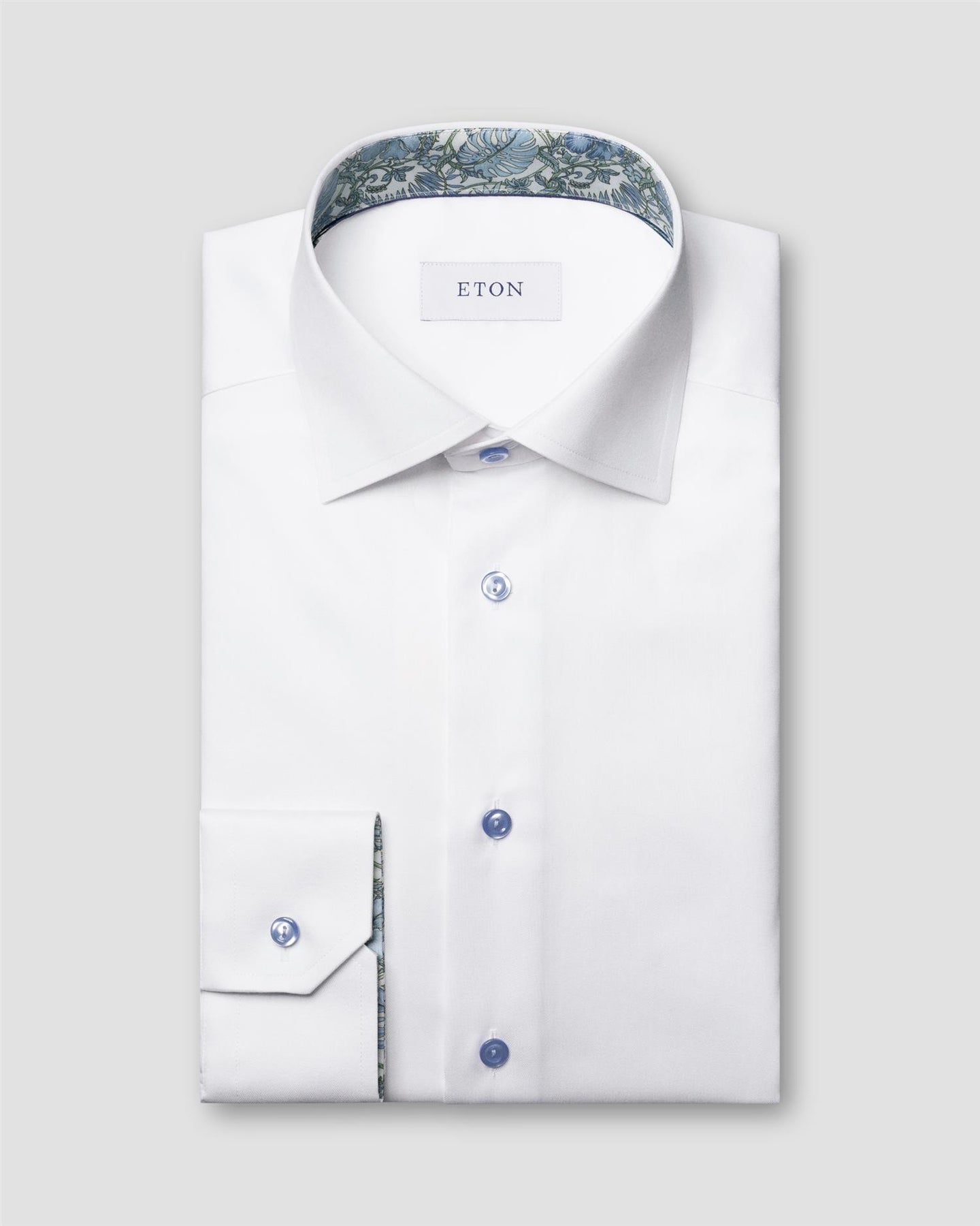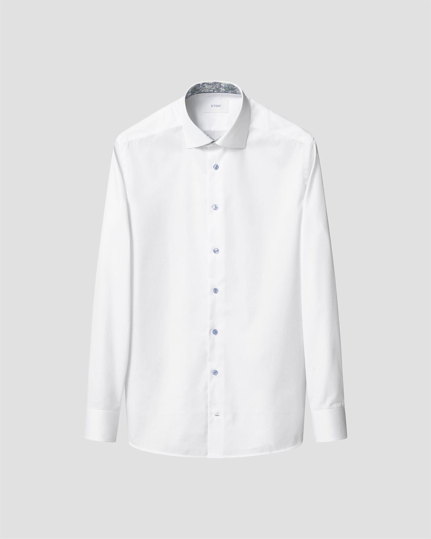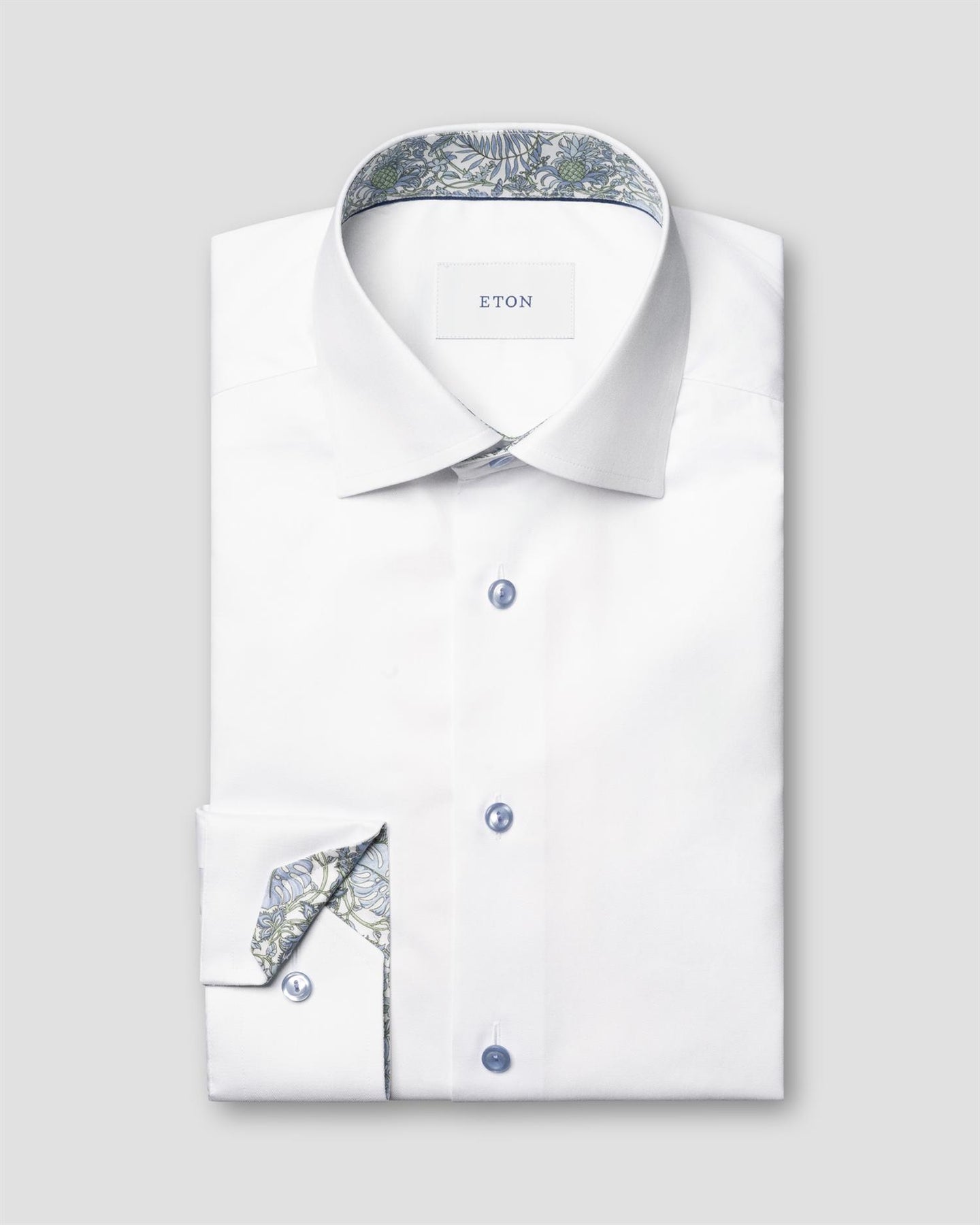 Floral Effect Signature Twill Shirt. En stilren skjorte med et subtilt floral-inspirert uttrykk som gir et sofistikert løft til garderoben. Laget i myk og pustende twillvevd bomull, som sikrer både komfort og et eksklusivt preg gjennom hele dagen. Perfekt både til jobb og mer formelle anledninger. Den klassiske hvite fargen gjør den enkel å style, enten med dress eller mer avslappede kombinasjoner