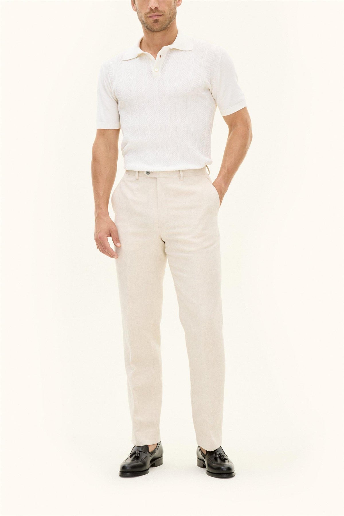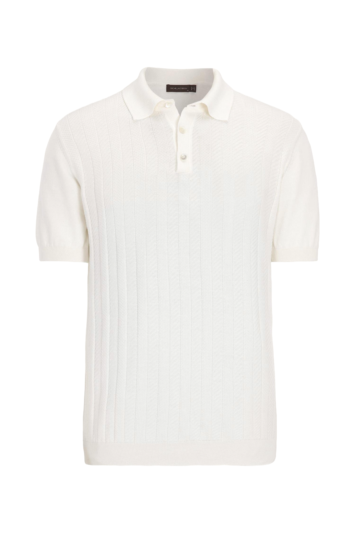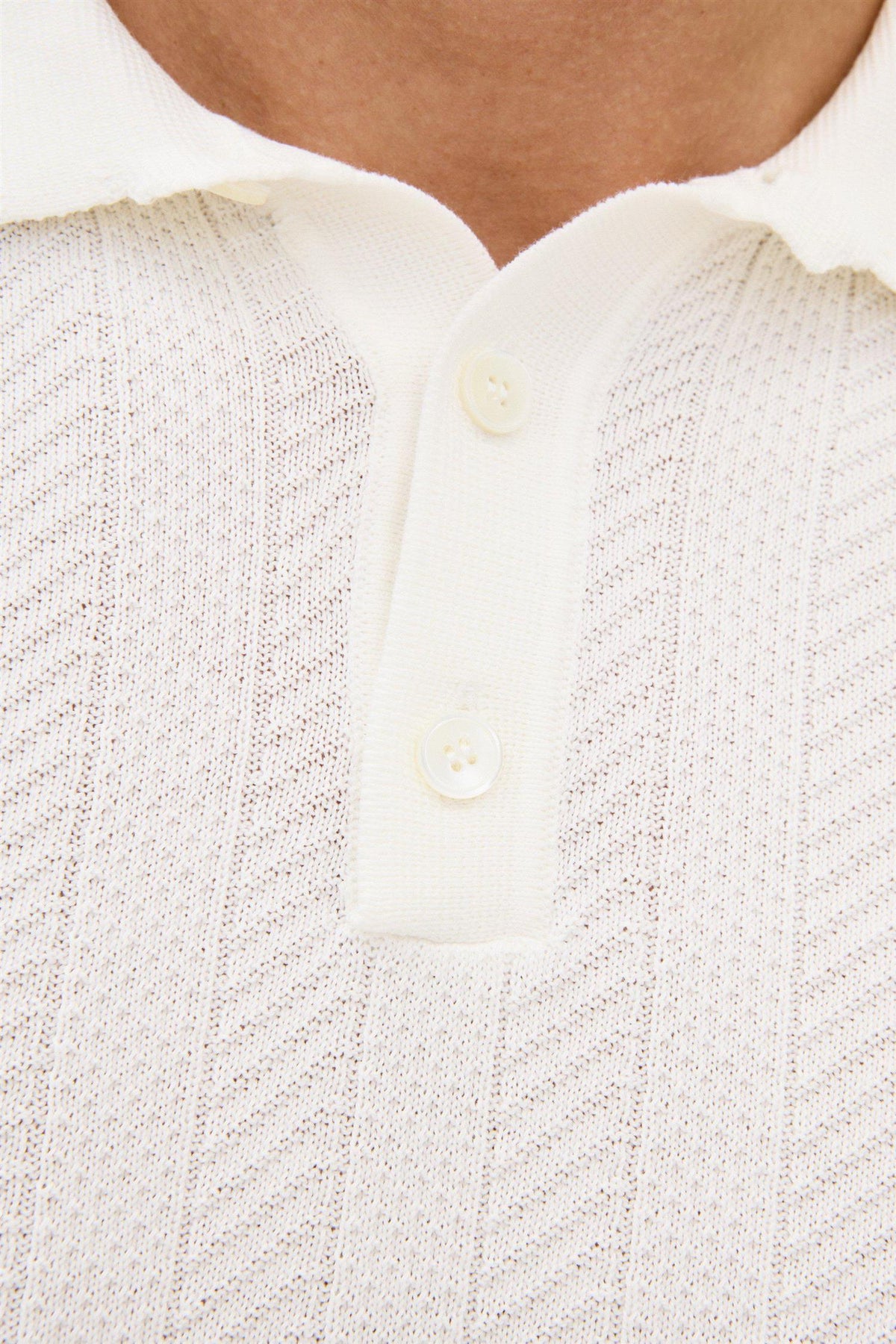 Kortermet kragegenser i bomull med en elegant struktur foran, strikket i 12gg. Genseren har en formet krage og er dekorert med tre knapper i perlemor foran. Et stilfullt plagg som fungerer like godt alene som under en blazer. 100% bomull