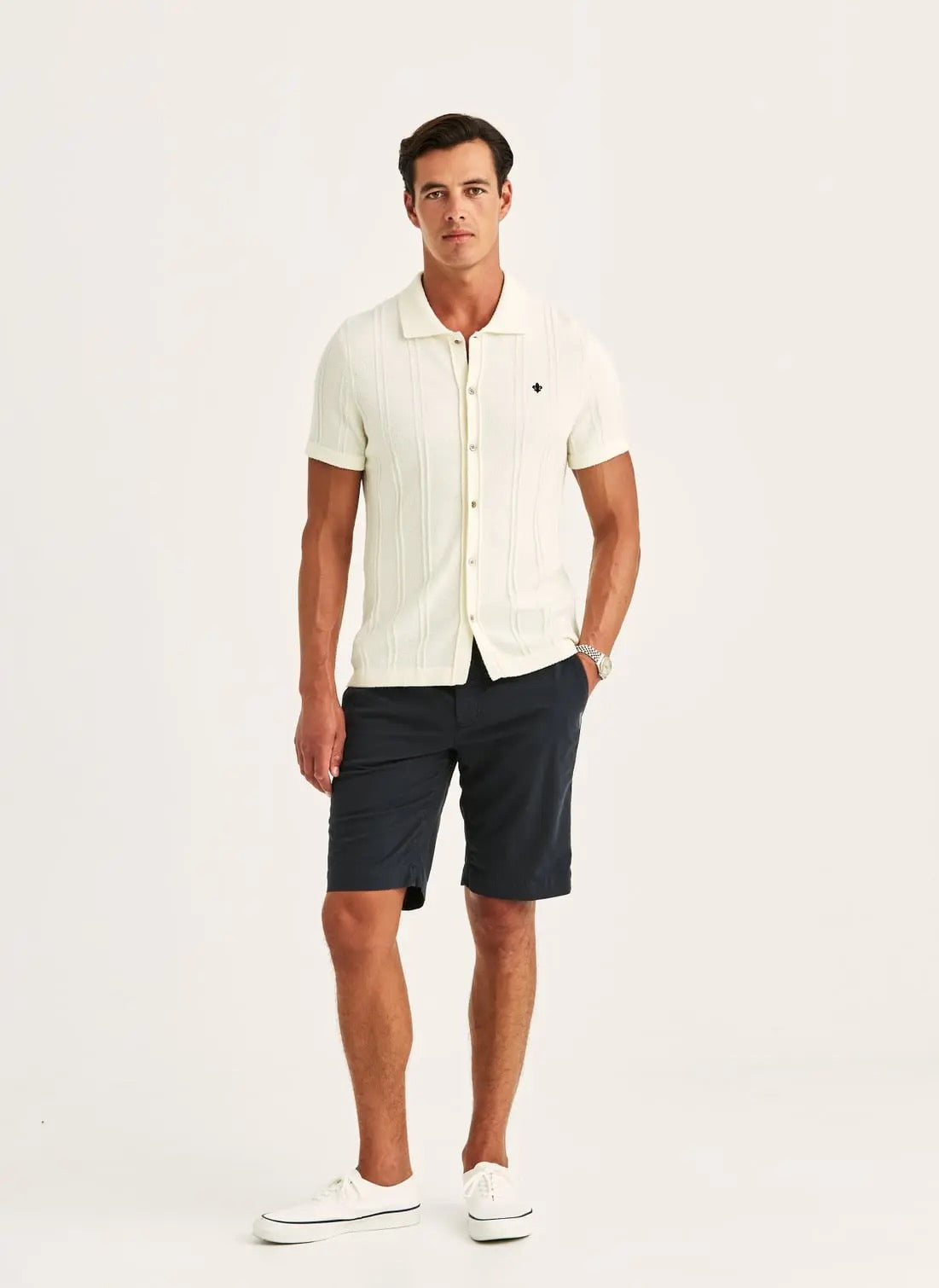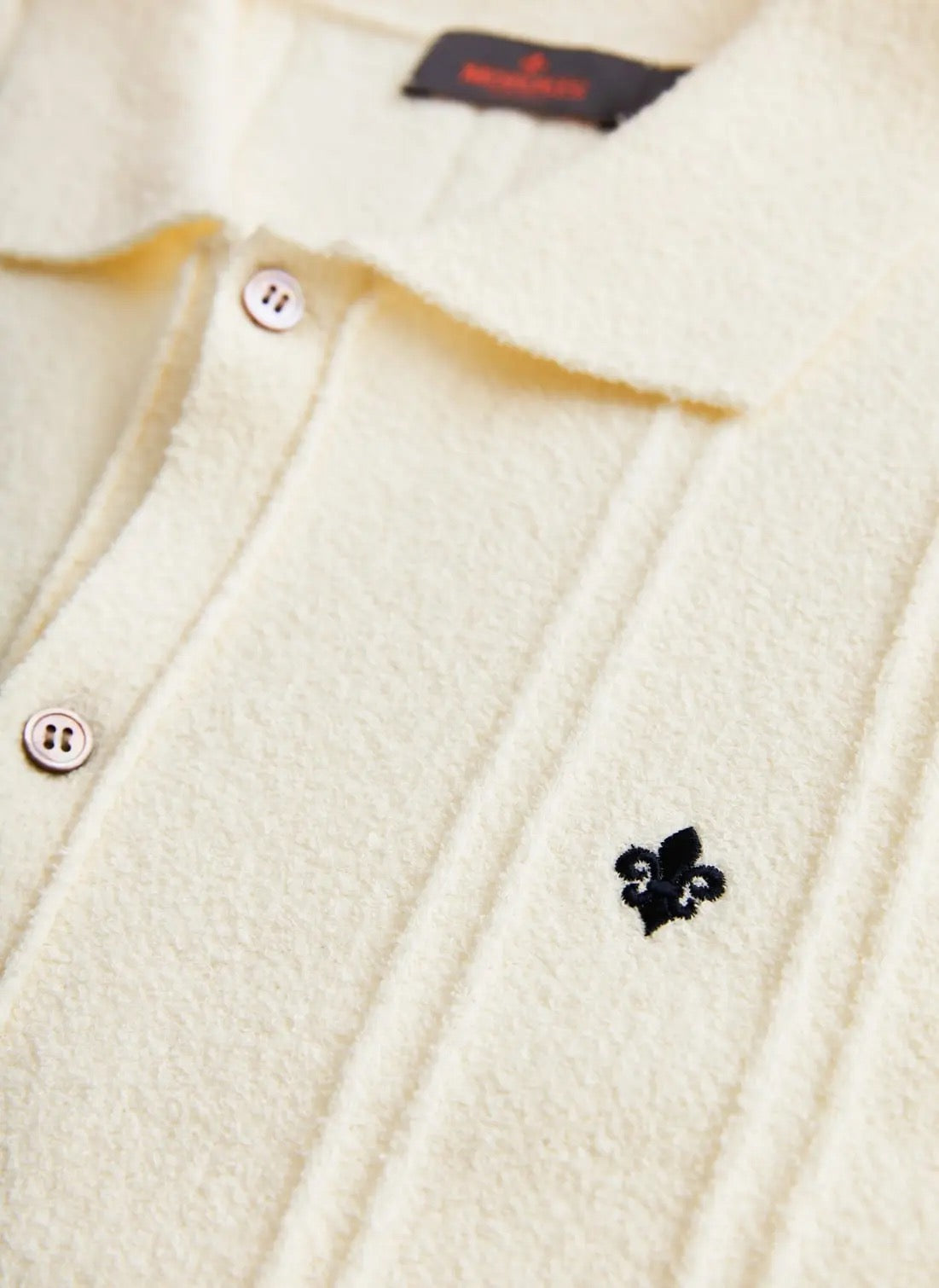 Clayton Knitted SS-skjorten kombinerer retrosjarm med moderne eleganse. Den strikkede bomulls- og polyamidstrukturen gir den like mye form som mykhet. Bruk den knept igjen eller åpen over en t-skjorte. En stilig nikk til mid-century-design. Kommer med brodert Morris-lilje på brystet.