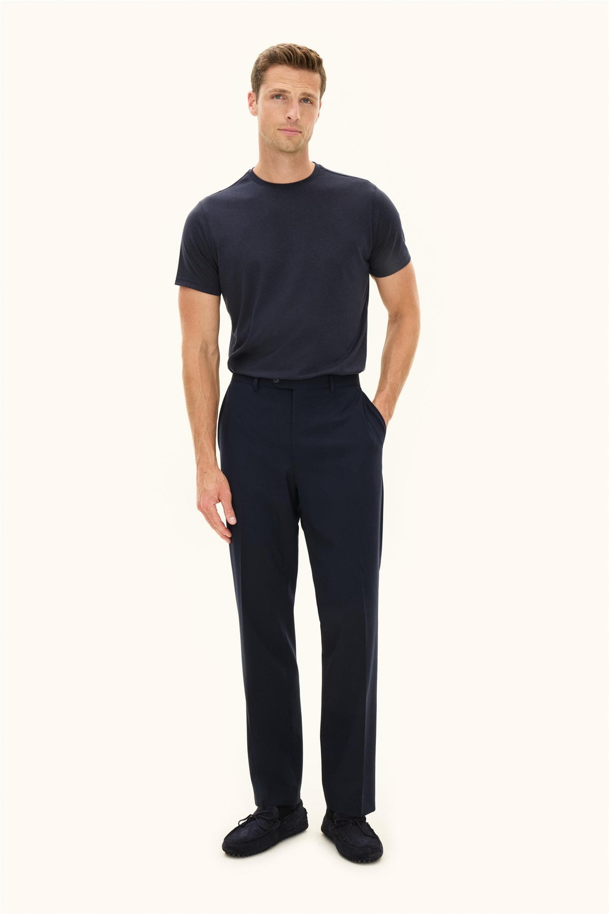 En myk og komfortabel t-skjorte laget av bomull-tencel. Litt glansfullt stoff som gir en stilfull og elegant følelse. Perfekt å bruke både under jakken og ved uformelle anledninger. 67% Lyocell, 33% Bomull
