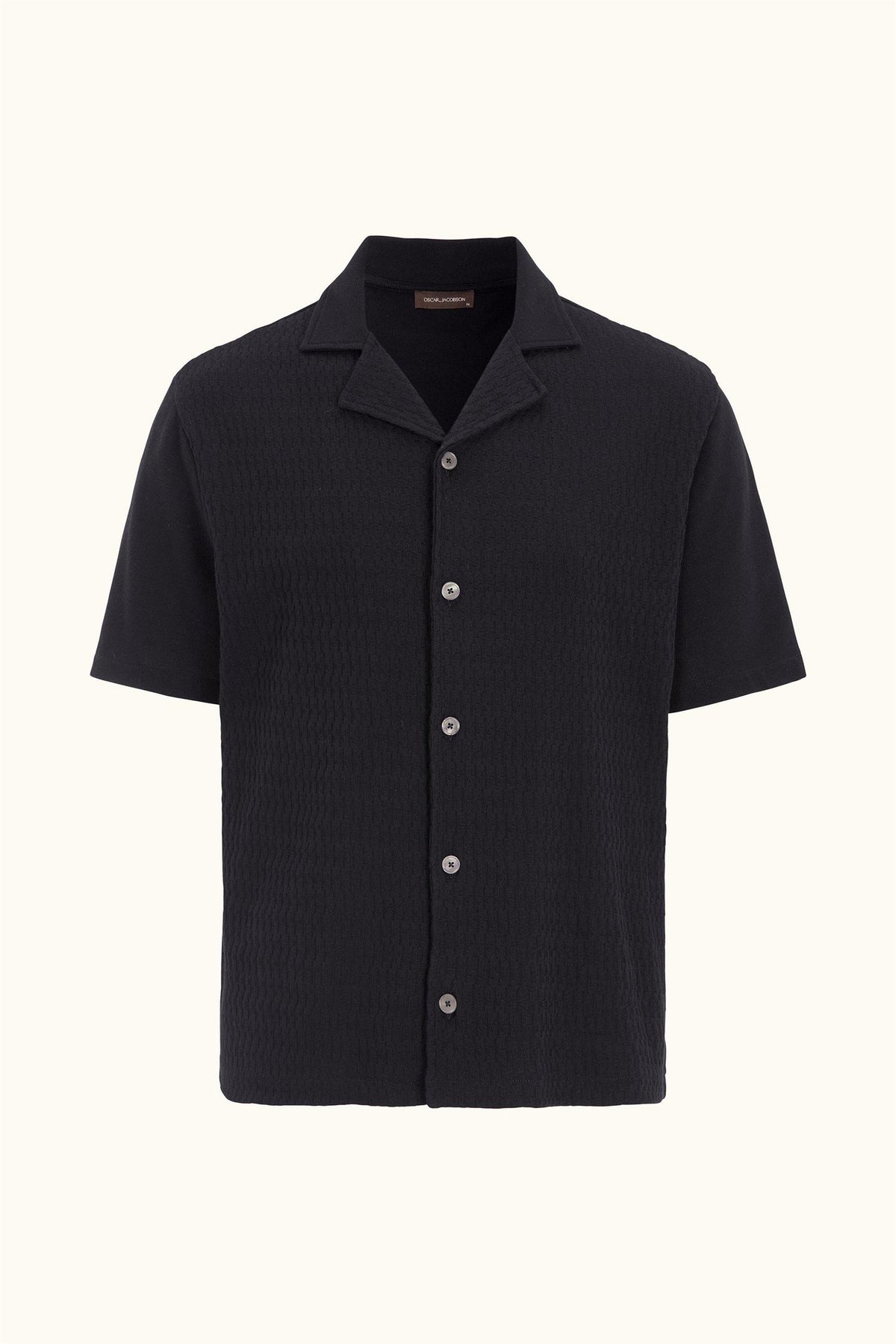 Denne kortermede bomullstrøya er laget av bomullsjersey med en elegant struktur foran og har knapper i perlemor som gir en sofistikert detalj. Et komfortabelt og luftig plagg, perfekt for varme sommerdager.