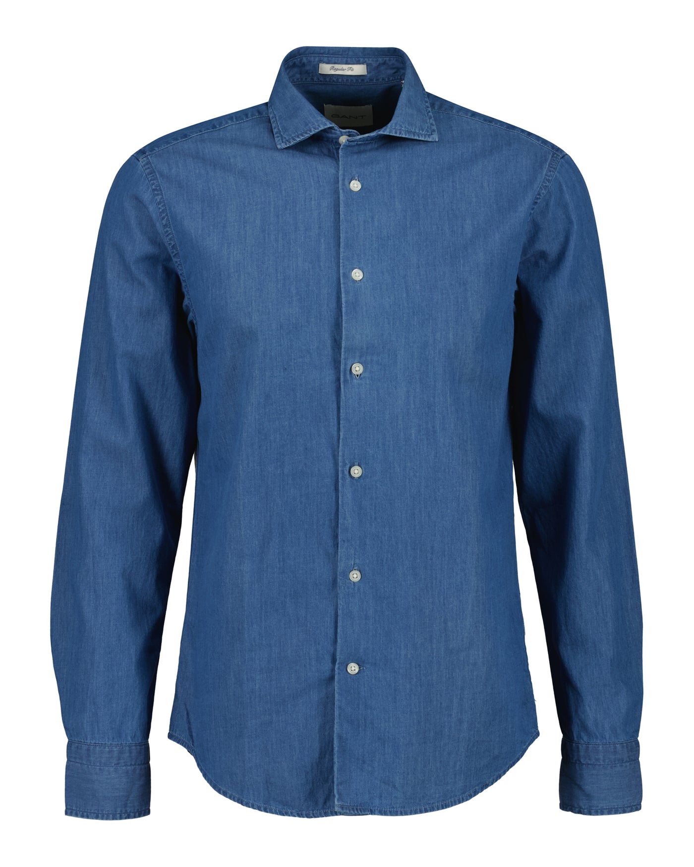 Denne skjorten er laget av 100 % bomull i en lett indigo-twill, og er klesvasket for en myk følelse. Den har en normal passform, cutaway-krage, justerbare mansjetter, en buet fald og knapper i resirkulert polyester. Den er detaljert med logoen vår brodert på ermet og en boksfold med vår signaturlåseløkke bak.