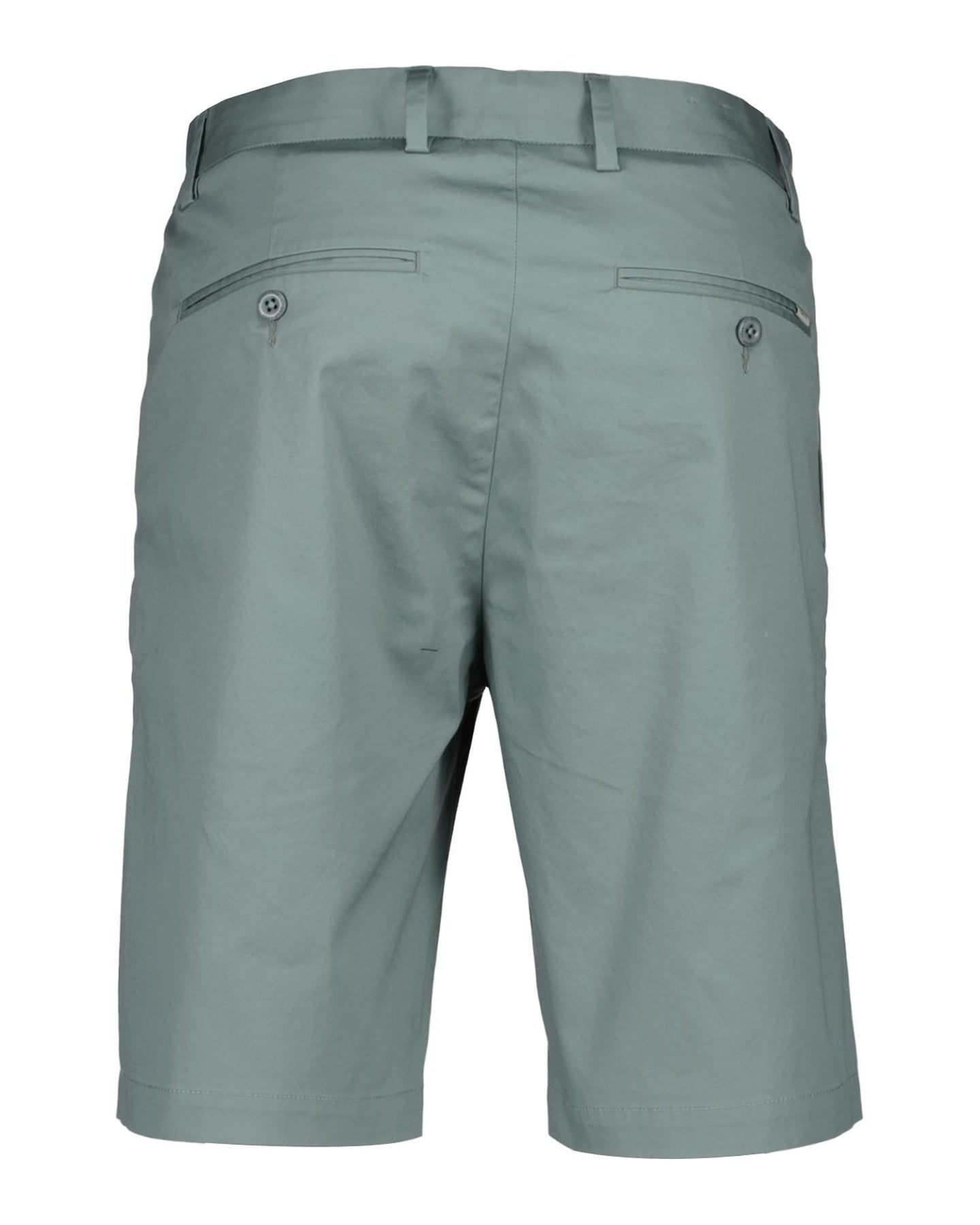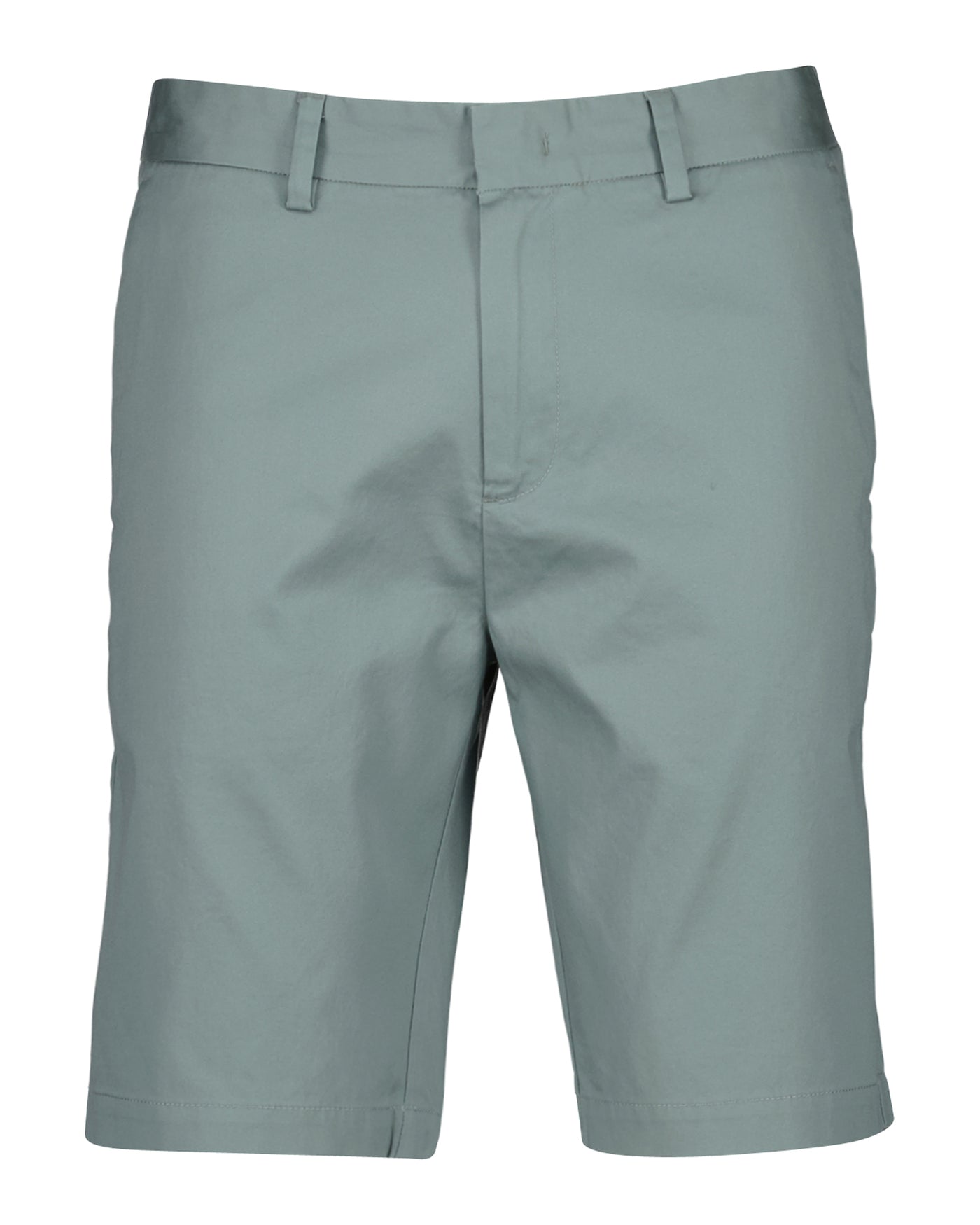 Disse herreshortsene har en moderne slim passform og er laget i lett, fint twill-stoff med komfortstretch og vannavvisende finish. Shortsen har skråstilte frontlommer, beltehemper, glidelås med krok- og stanglås, og en skjult lomme med glidelås på høyre frontlomme. Bak finner du knappede dobbelte baklommer med piping, en vevd merkeetikett på høyre baklomme og branded corozo-knapper. Innsiden av lommer og kanting har et stilig stripemønster som detalj.