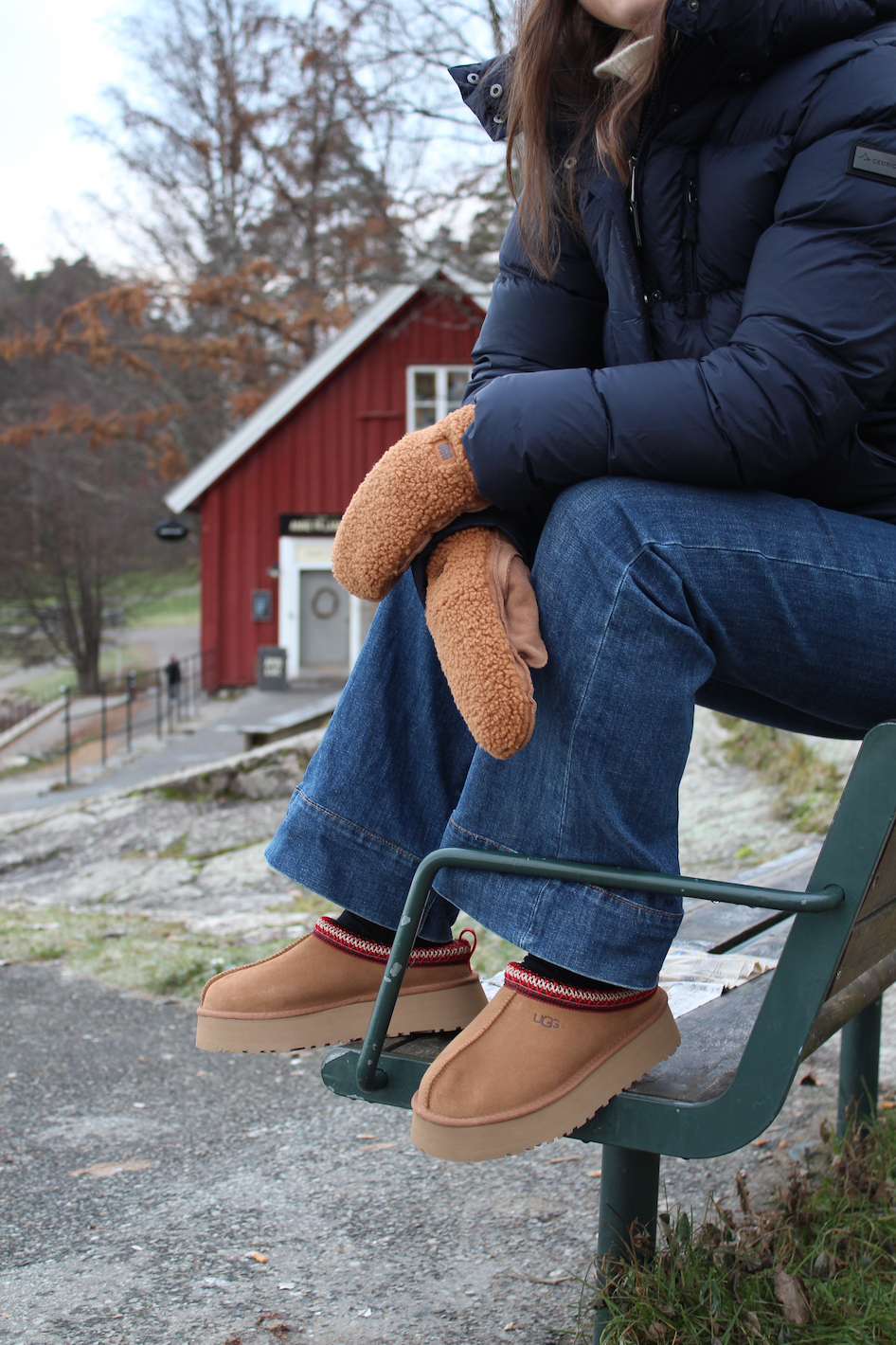 Den flettede UGG®-detaljen, laget av 100 % resirkulerte polyesterfibre, tilfører et håndverksinspirert preg – og den lette plattformen på 4,8 cm gir deg både høyde og holdning, uten å gå på kompromiss med komforten.