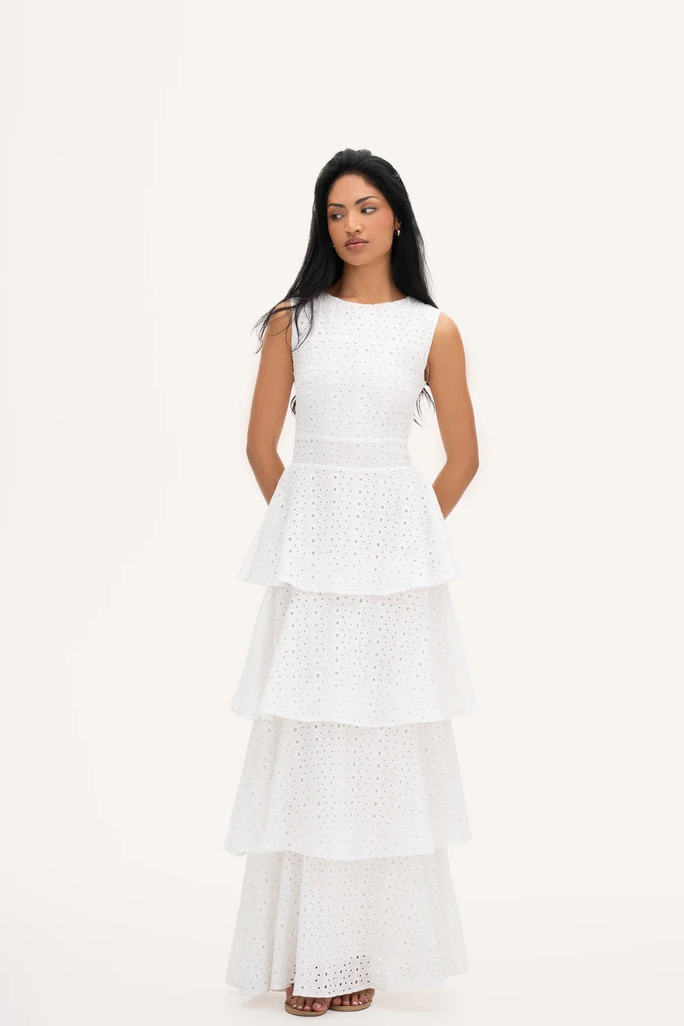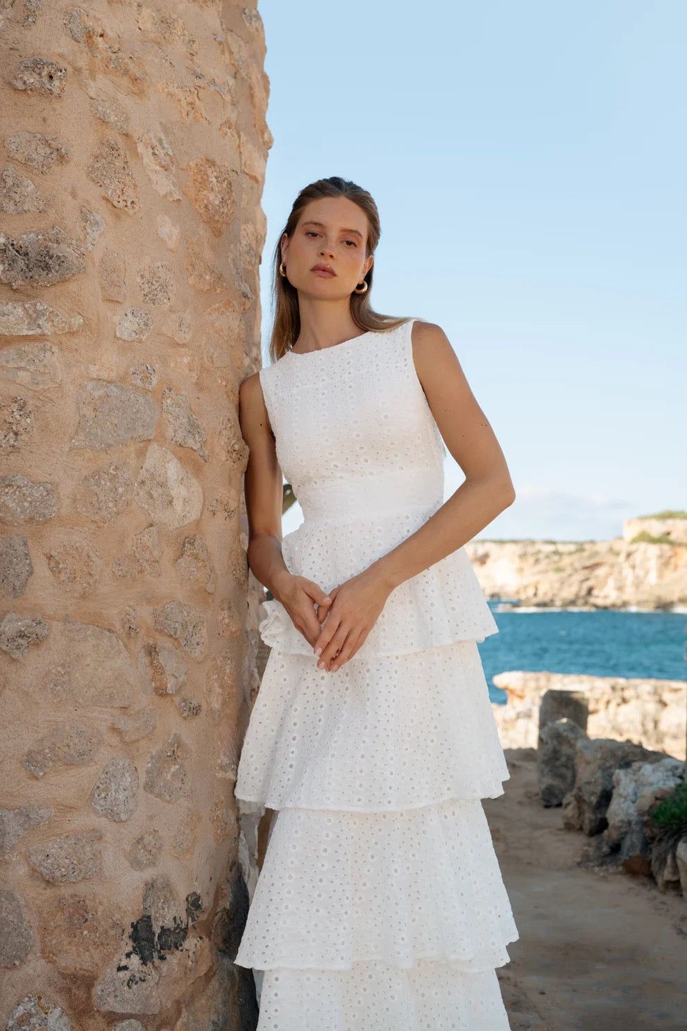Ariana-kjolen fanger tidløs femininitet med et moderne preg. Laget av 100 % bomull, har den en tettsittende overdel og broderilag som faller vakkert inn i en hel silhuett. Den intrikate teksturen og den myke strukturen skaper et uanstrengt romantisk utseende. En glidelås bak sikrer en sømløs og flatterende passform. Perfekt for sommerfester, hagesamlinger eller feiringer ved sjøen. Laget i Tyrkia av produsenten Lora İstanbul Tekstil Tic. San. A.Ş.