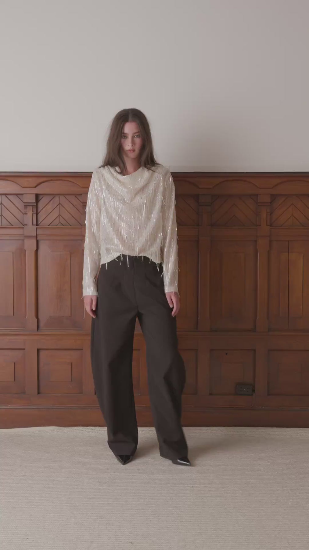Smooth Barrel Pants er en stilren sort dressbukse med en moderne balongfasong. Buksen har en avslappet, men sofistikert silhuett som kombinerer komfort og eleganse på en enkel måte. Perfekt til både hverdagsbruk og mer pyntede anledninger.