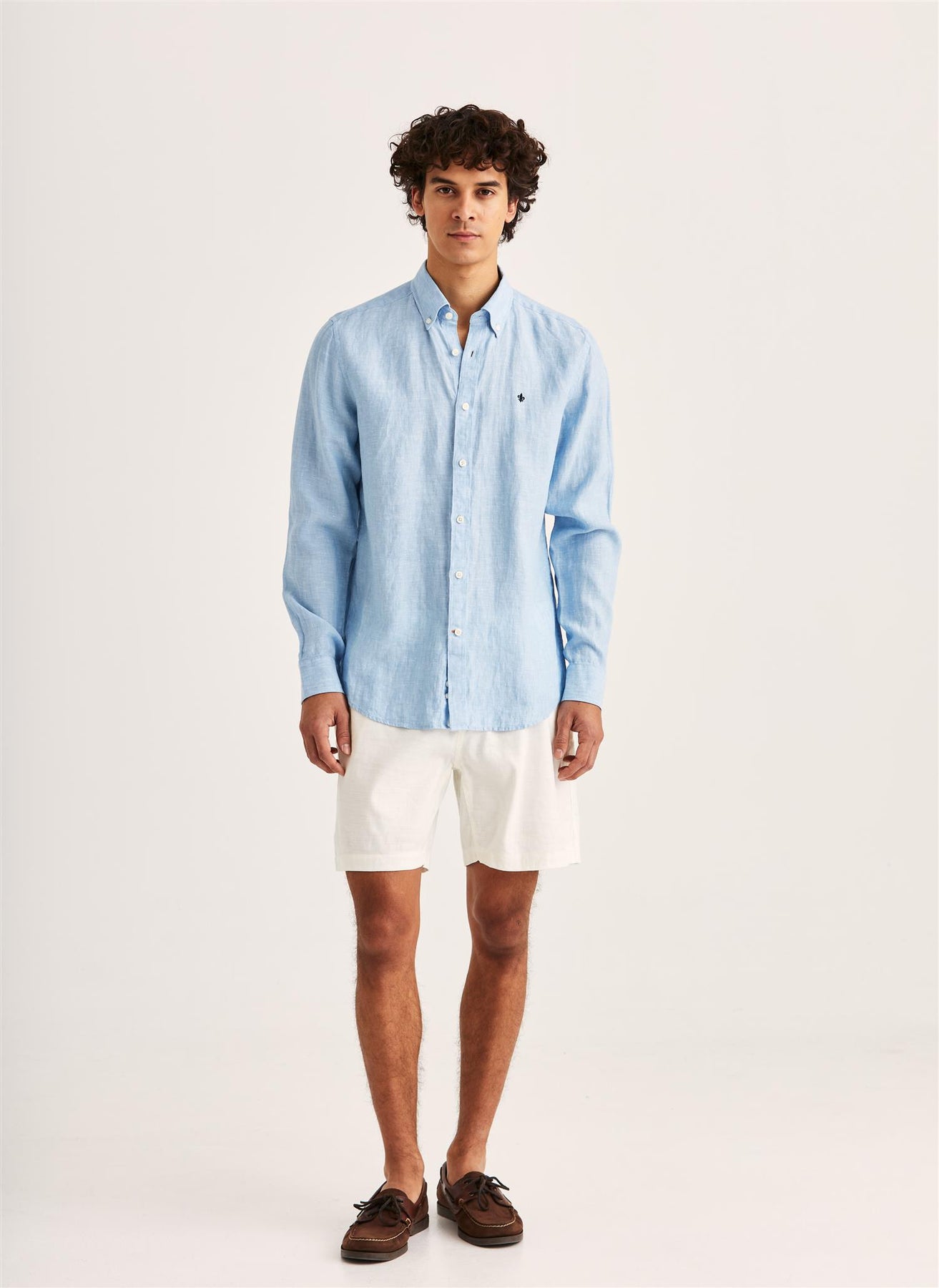 Douglas linskjorte er et ikon i Morris-kolleksjonene. Vår populære linkvalitet har en lett, sommerlig følelse og kommer i mange farger, både mykere blandinger og mer dristige ensfargede nyanser. Vi mener at du ikke kan ha for mange linskjorter å rotere i garderoben din om sommeren. Bruk den med 5-lommersbukser og en blazer tidlig i sesongen, og med shorts eller badebukser når sommeren kommer. Douglas linskjorte har en button-down-krage, logoknapper og en brodert lilje på brystet. Douglas kommer i vår klassiske passform, som er smal, men litt mer avslappet enn vår mest smale passform.