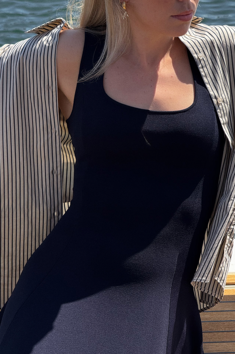 Denne strikkekjolen er designet med en tettsittende silhuett som flyter inn i et subtilt skjær. Det myke viskoseblandingsstoffet gir en glatt og fleksibel følelse, mens midi-lengden gir en uanstrengt følelse av eleganse.