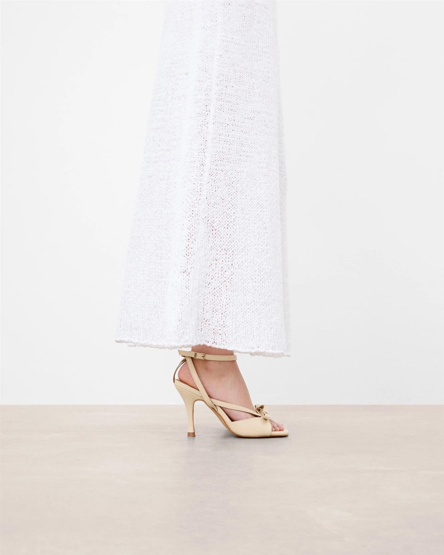 Disse elegante skoene har en hælhøyde på 7,5 cm og er håndlaget i Elda, Spania. Overmaterialet er laget av mykt geiteskinn, og innsiden er foret med geiteskinn (Capra Hircus) for komfort og luksuriøs følelse. Yttersålen er laget av Thunit-gummi, som gir godt grep og holdbarhet. Skoene leveres i en miljøvennlig skoeske av resirkulert papir uten lim eller fargestoffer, trykket med vannbasert blekk, og kommer med en støvpose laget av 60 % resirkulert bomull og 40 % resirkulert polyester.