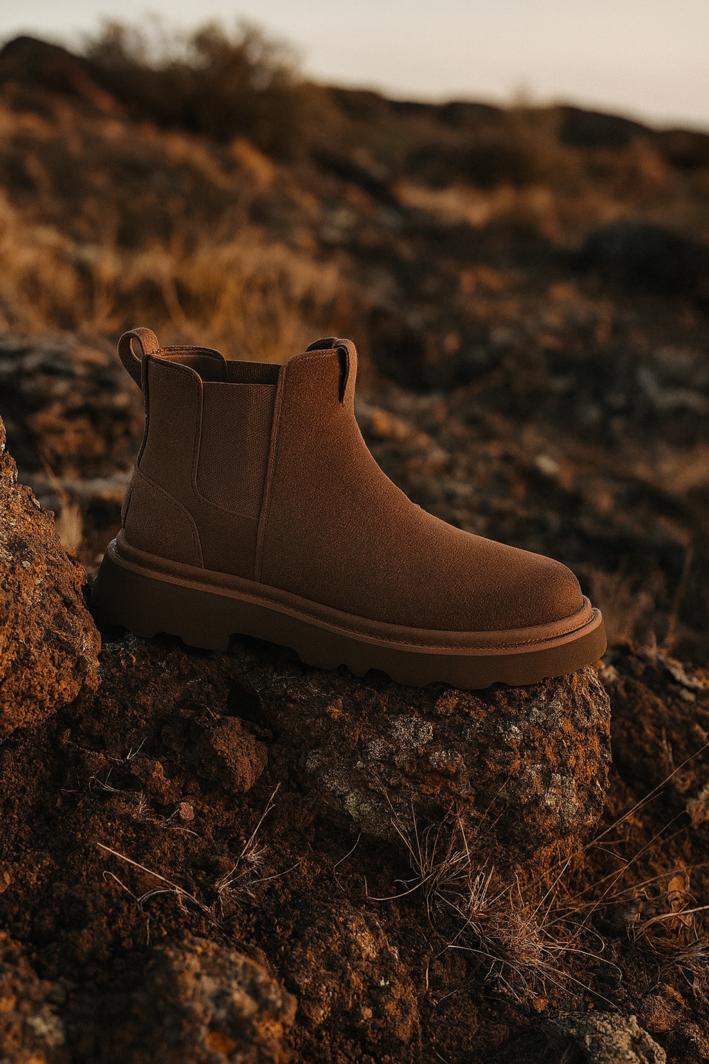 M Chelsea Lug fra UGG. Skoen kommer med elastiske paneler i sidene, noe som gjør den enkel å ta av og på. Den kombinerer uanstrengt stil med førsteklasses komfort.