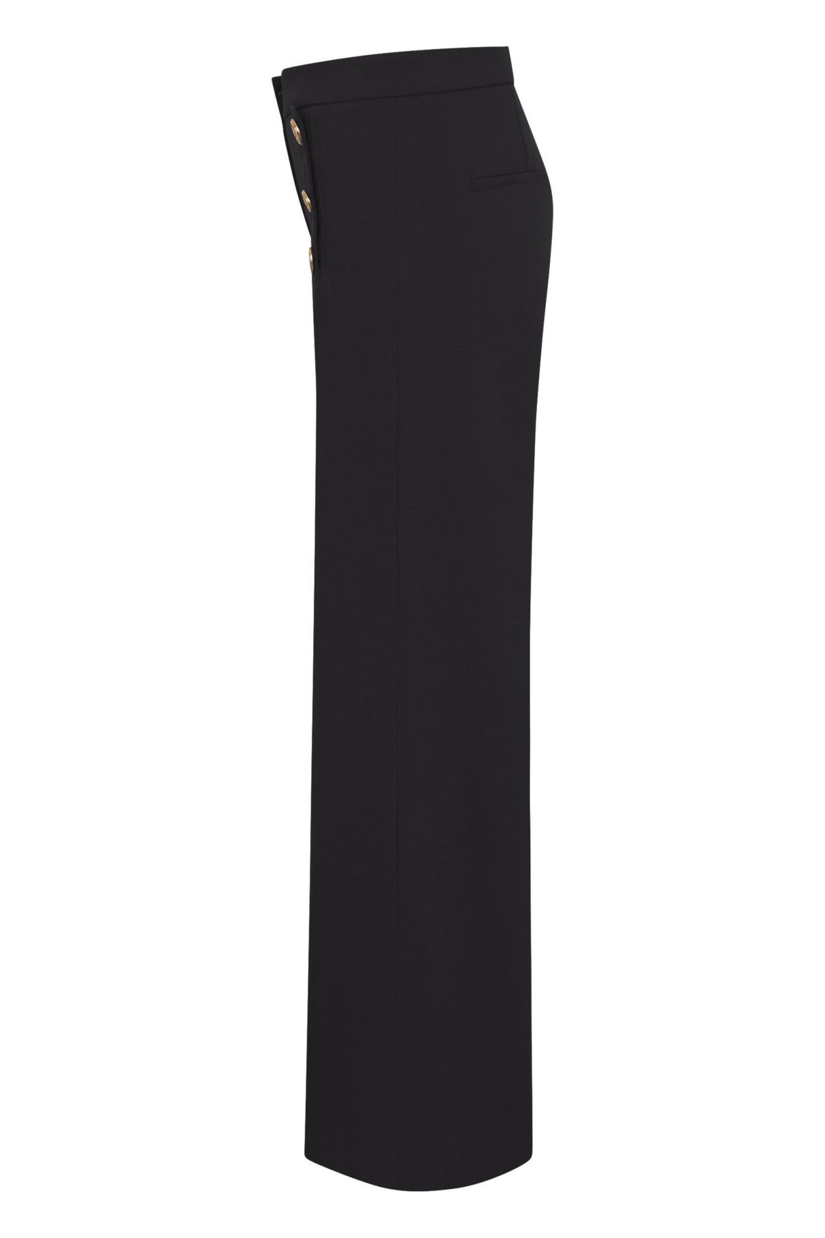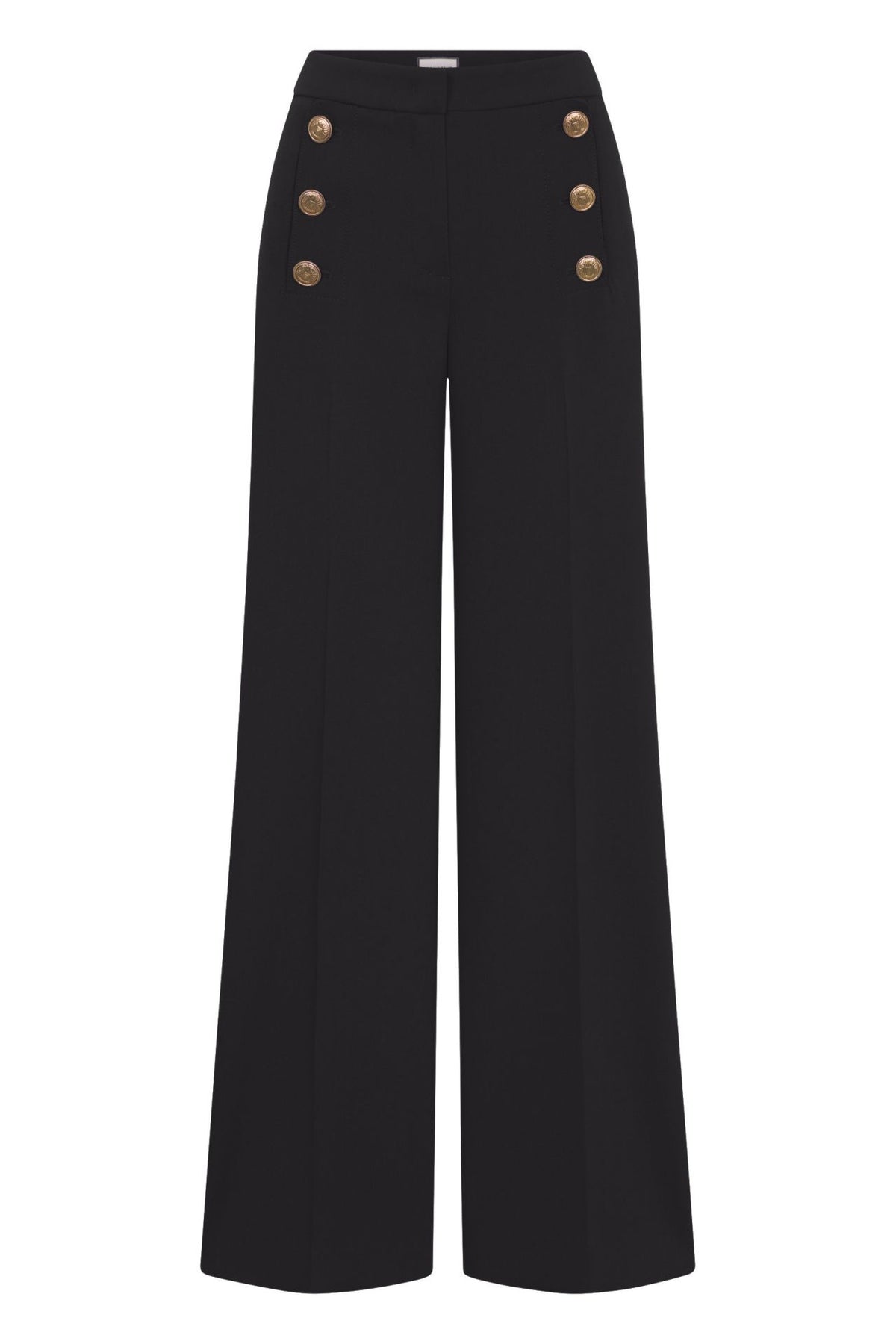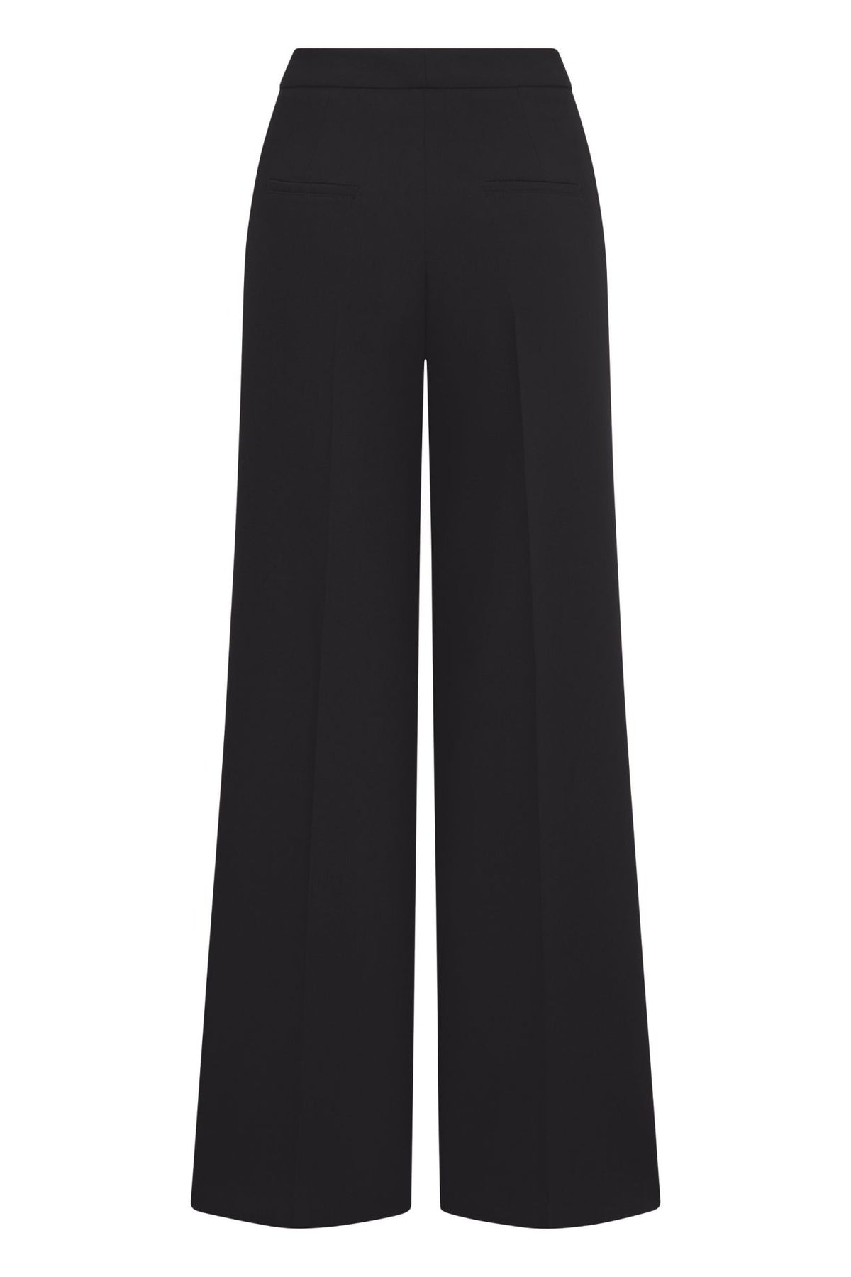 Disse buksene kombinerer elegant design med høy komfort. De vide bena gir et tidløst og flatterende uttrykk, mens kneppestolpen foran tilfører et klassisk preg. Passpolerte lommer bak fullfører det sofistikerte designet. Laget i et mykt og lett teksturert stoff med kryss-elastisk kvalitet som gir god bevegelighet og en flatterende passform. Et perfekt valg for både jobb og fritid.