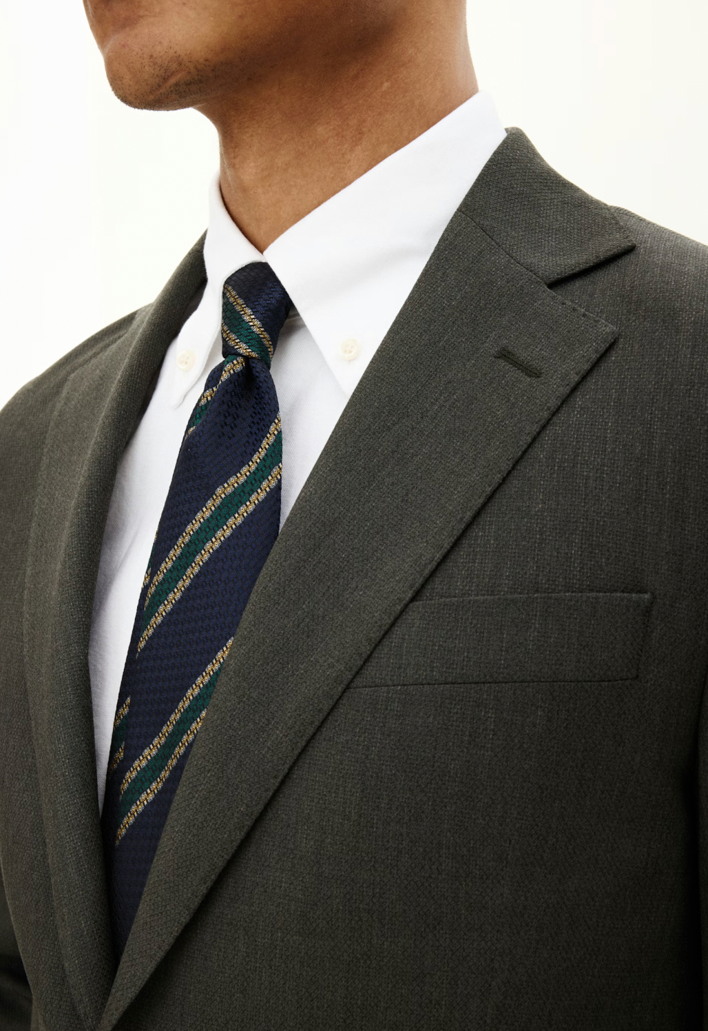 Laget av 100% ull fra vever Marzotto, er denne blazeren et utmerket valg både på kontoret og til helgemiddagen. Modellen er fullt foret og har en mykt konstruert bryst- og skulderparti. Passformen er skreddersydd og gir en moderne silhuett med litt mer plass enn våre smaleste modeller.