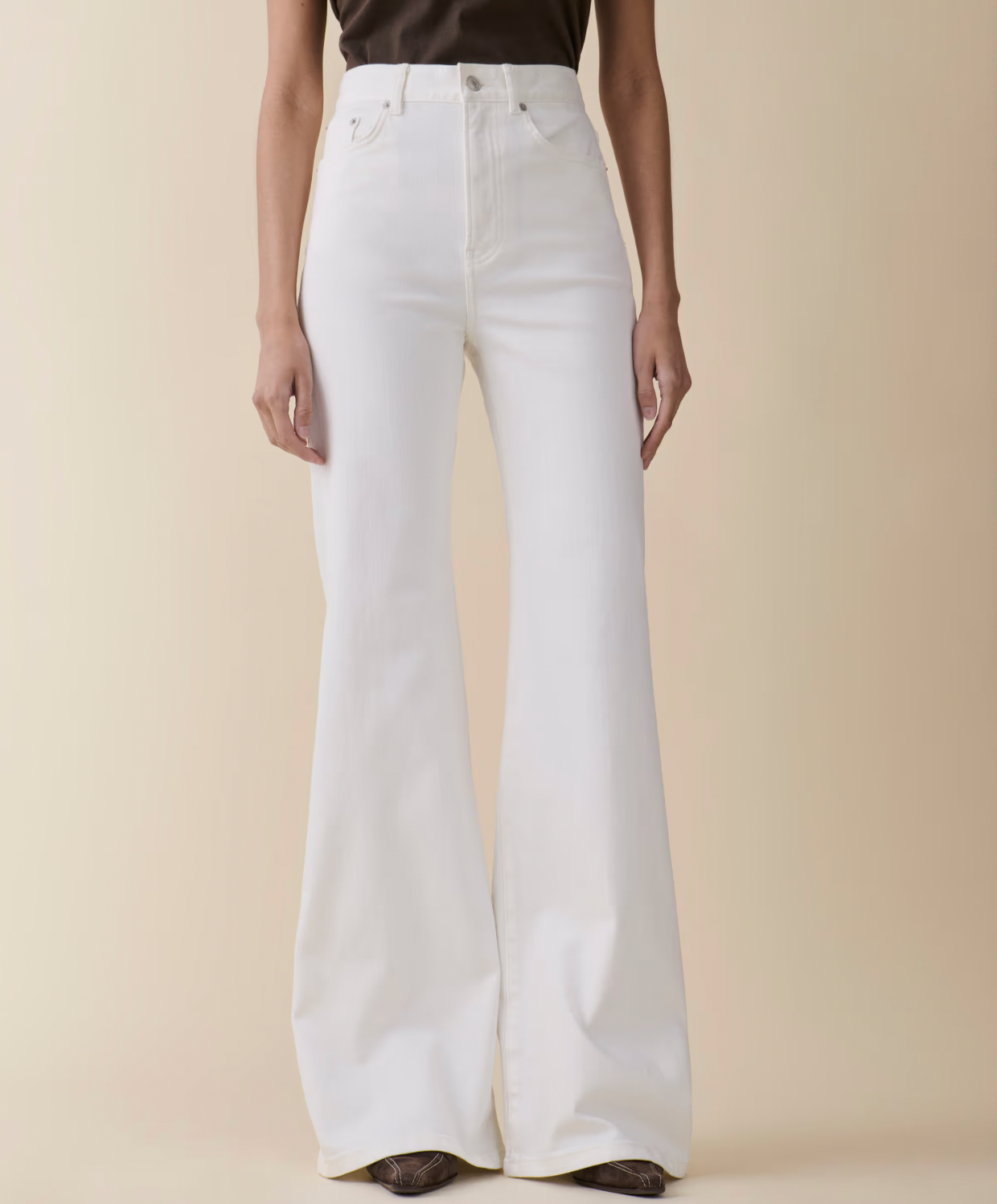 «Fuji» er en frisk tolkning av den utstrakte silhuetten fra 1970-tallet med glidelåsgylf, høy midje og kaskader av forlengede ben.