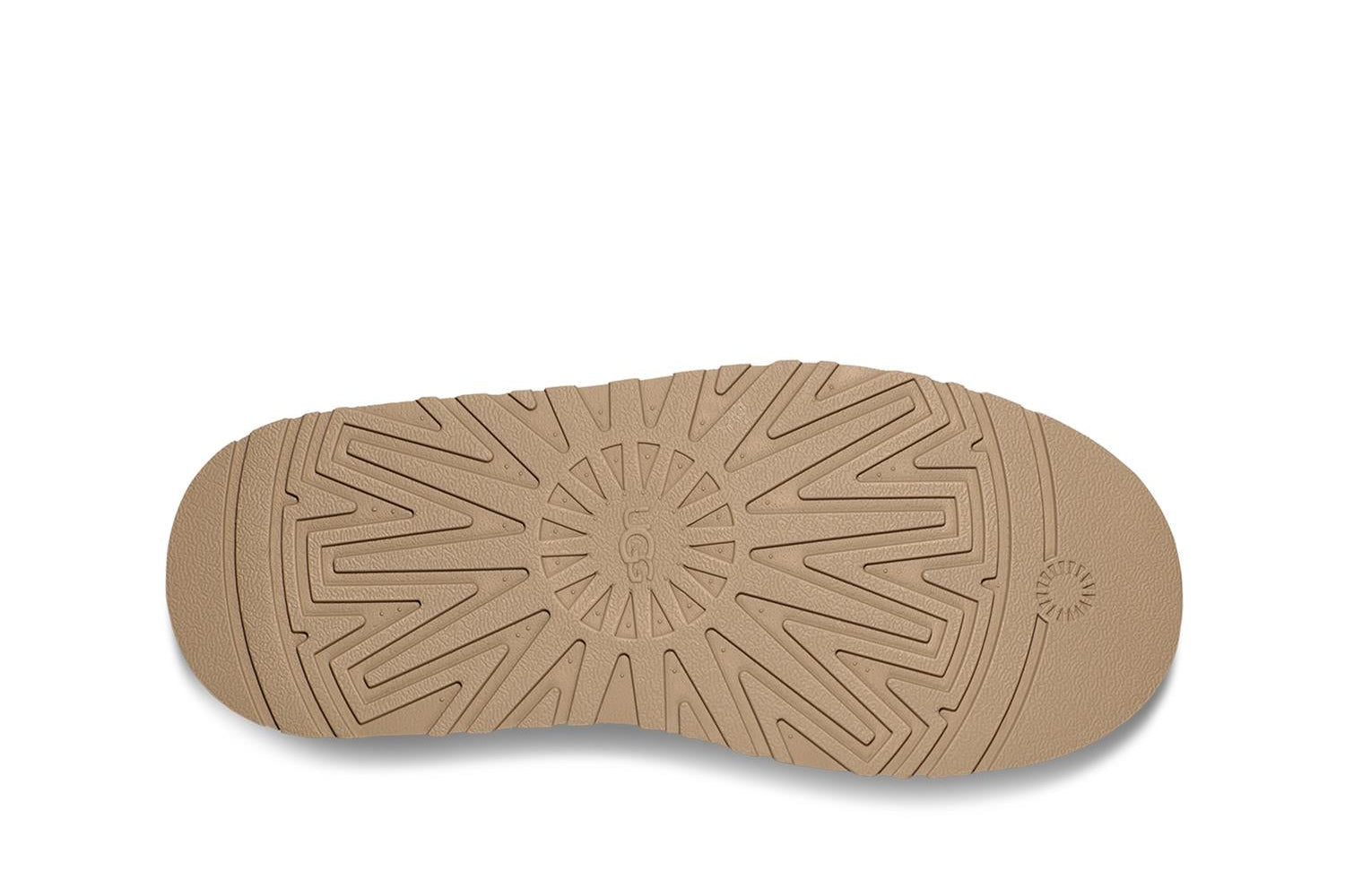 Tazz II er tilbake – og bedre enn noensinne. Med sitt ikoniske design og den samme komforten som har gjort originalen til en favoritt, kombinerer denne oppgraderte versjonen stil og funksjon i perfekt balanse. Den glatte overdelen i semsket skinn er fôret med myk, temperaturregulerende saueskinn, mens en forbedret rocker-form og sukkerrørbasert EVA-såle gir naturlig bevegelse og demping i hvert steg. Den flettede UGG®-detaljen, laget av 100 % resirkulerte polyesterfibre, tilfører et håndverksinspirert preg – og den lette plattformen på 4,8 cm gir deg både høyde og holdning, uten å gå på kompromiss med komforten.