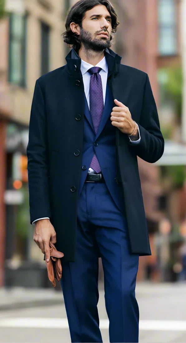 Denne herrefrakken er laget av høykvalitets ull, som gir både varme og stil. Den har en elegant krage som tilfører et sofistikert preg, og gjør frakken ideell for både hverdagsbruk og mer formelle anledninger. Designet kombinerer funksjonalitet med moderne mote, noe som gjør den til et must-have i enhver manns garderobe.