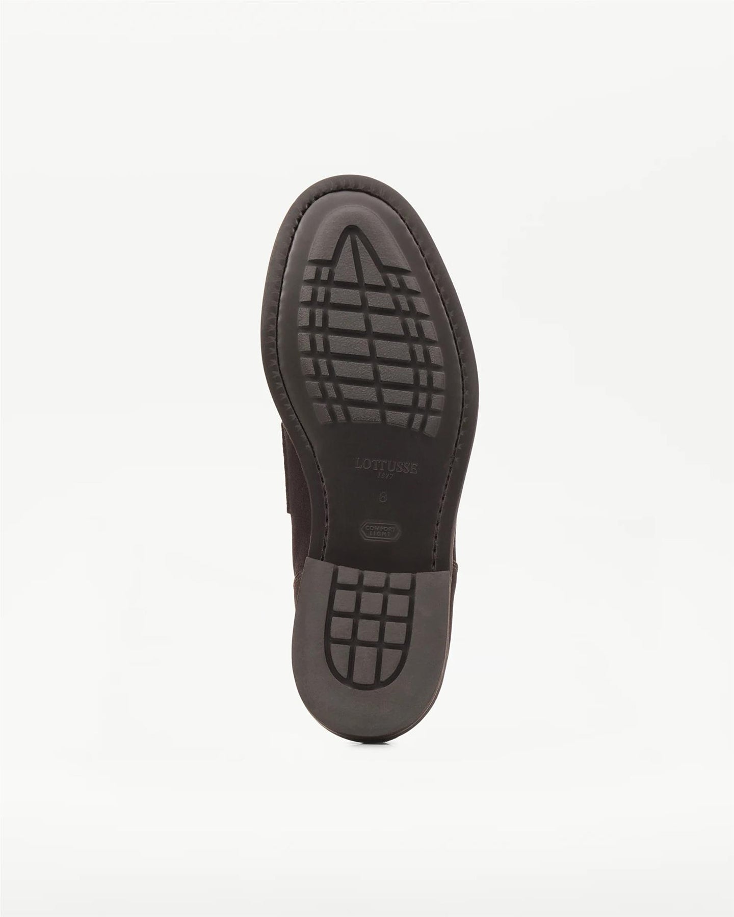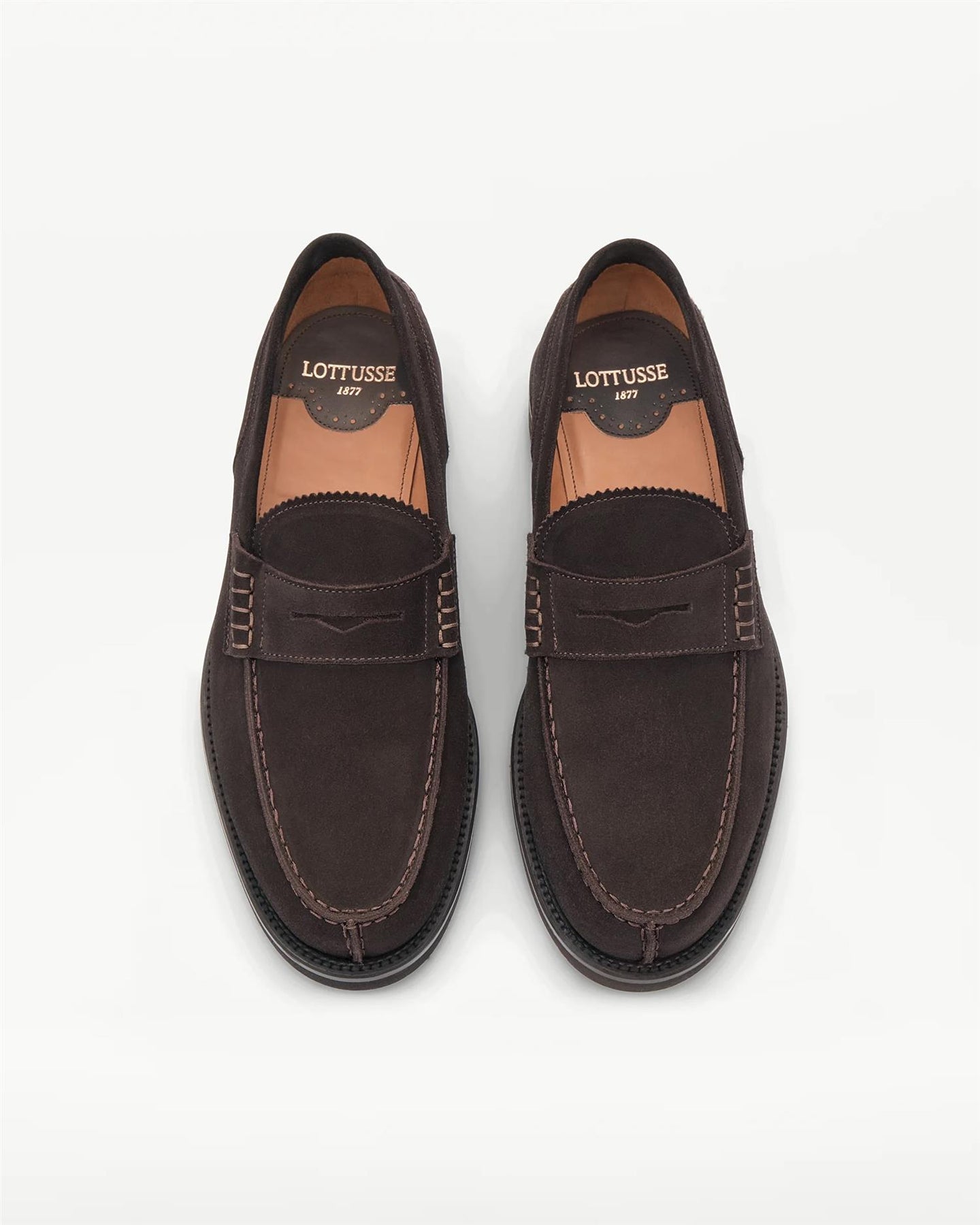Disse tradisjonelle herreloaferne er en del av Daytona-kolleksjonen fra Lottusse. De er laget av semsket skinn av høy kvalitet som er mykt å ta på, og er designet for å tas av og på med letthet for maksimal komfort. Den karakteristiske mokkafargen gjør dem til et allsidig valg, egnet for både formelle og uformelle anledninger.