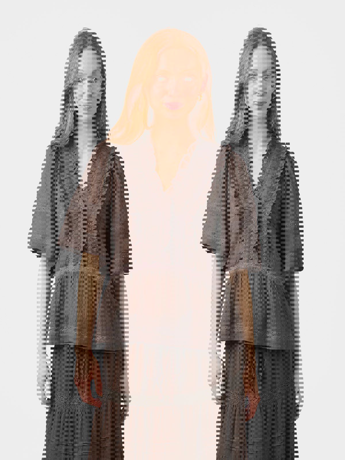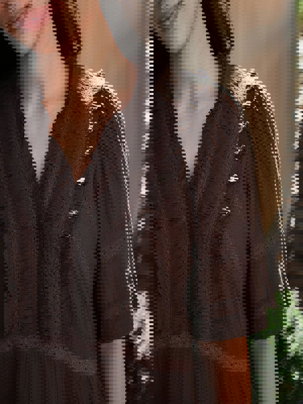 Evienne S Voile Top er en stilren og komfortabel topp laget av 100% bomull. Den mørkebrune fargen gir et elegant preg, perfekt for hverdagsbruk.
