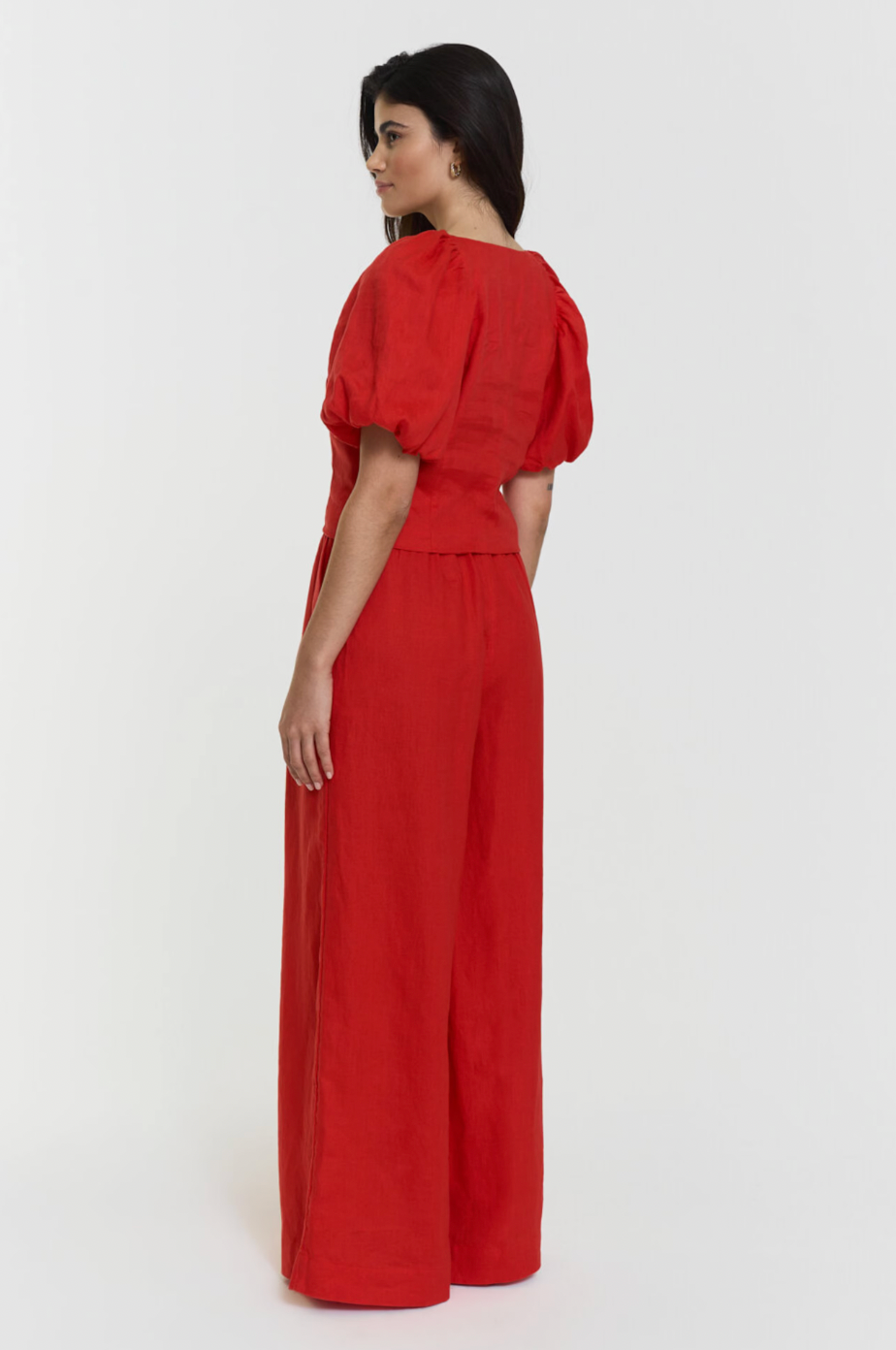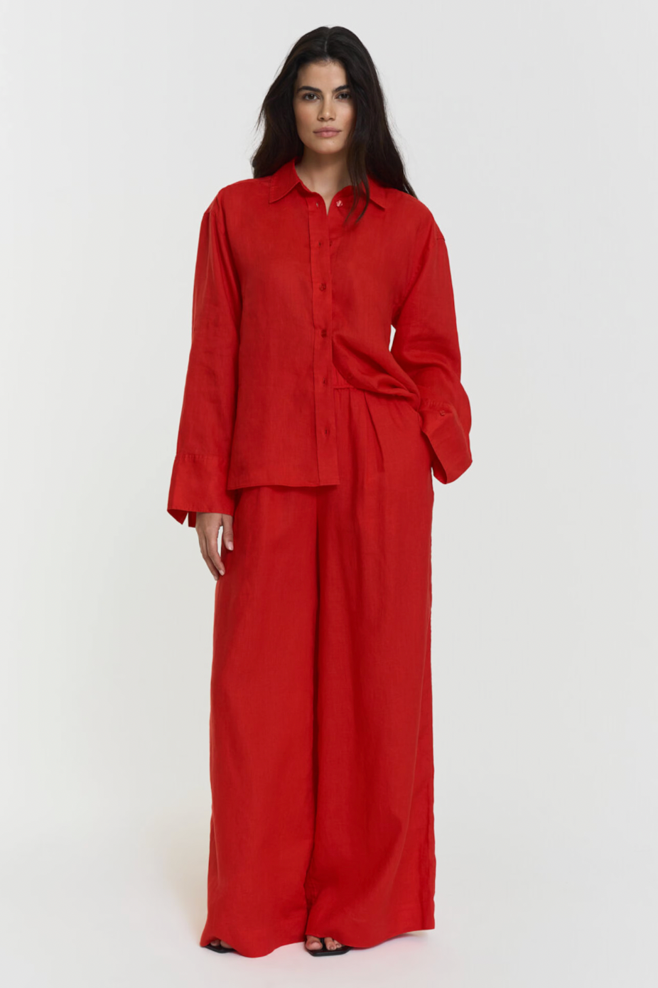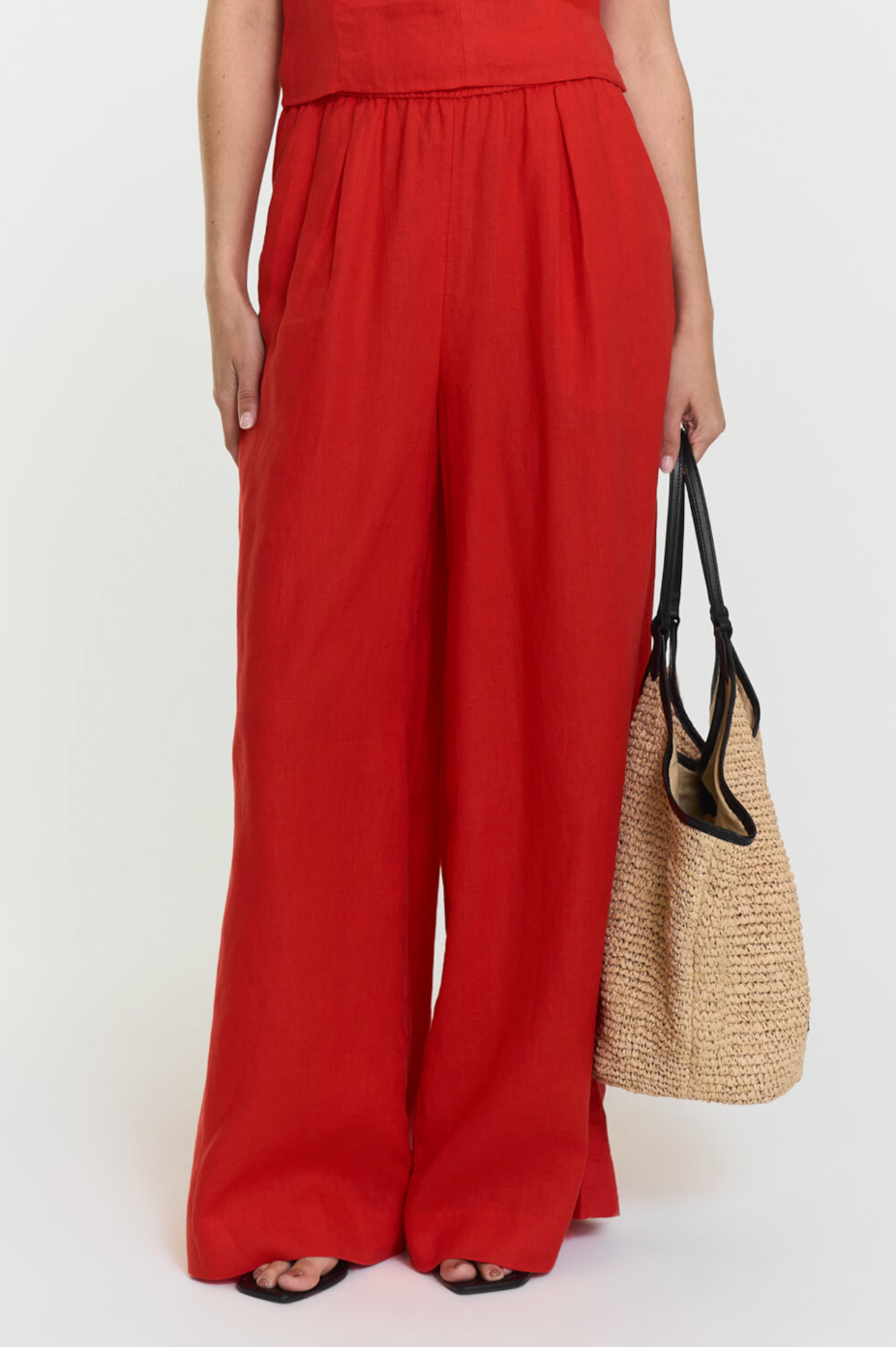 Aprilia Linen-buksene er laget av førsteklasses Long Fiber Linen, som kombinerer et mykt preg med et uanstrengt fall. Den avslappede vide benformen og den elastiske høye midjen skaper en avslappet silhuett, komplett med praktiske sidelommer for hverdagsbruk.