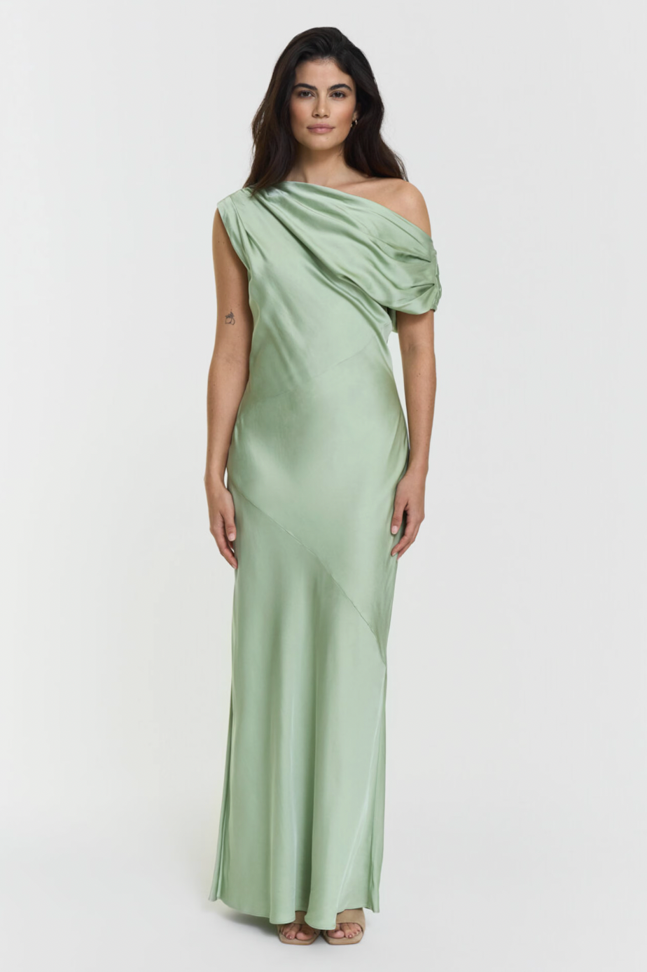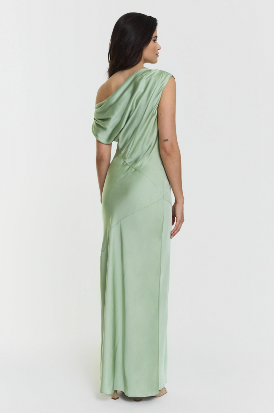 Vanessa Satin Dress har et luksuriøst satengstoff, elegant krage og flatterende skråstilt snitt. Den maksimale lengden skaper en tidløs silhuett, perfekt for enhver festlighet.