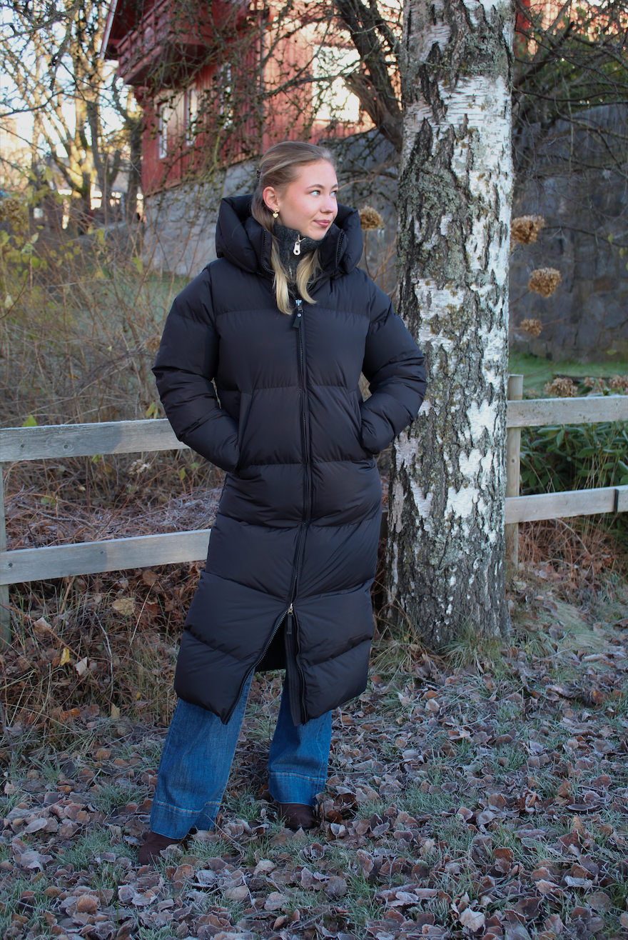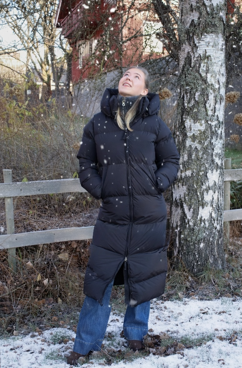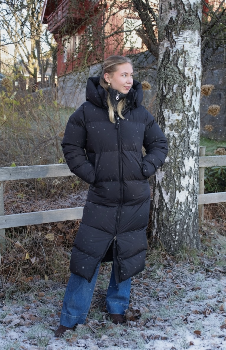 Juliet fra Cedrico er en varm, lang dunjakke. Jakken har to frontlommer og en romslig hette. ytterjakken kommer med en toveisglidelås for bevegelighet.