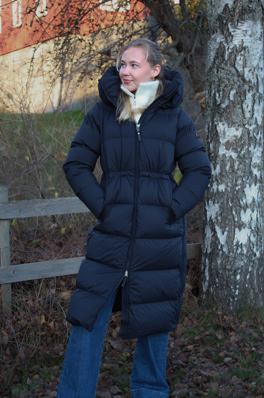 Luna har en pustende membran som sikrer at du holder deg komfortabel under alle værforhold. Med en justerbar midje kan du tilpasse passformen etter behov. Luna har også to glidelåser nederst på sidene, som gir ekstra bevegelsesfrihet og gjør jakken allsidig for ulike aktiviteter. Det elegante designet gjør Luna til det perfekte valget for kalde dager, uansett hvor du befinner deg.